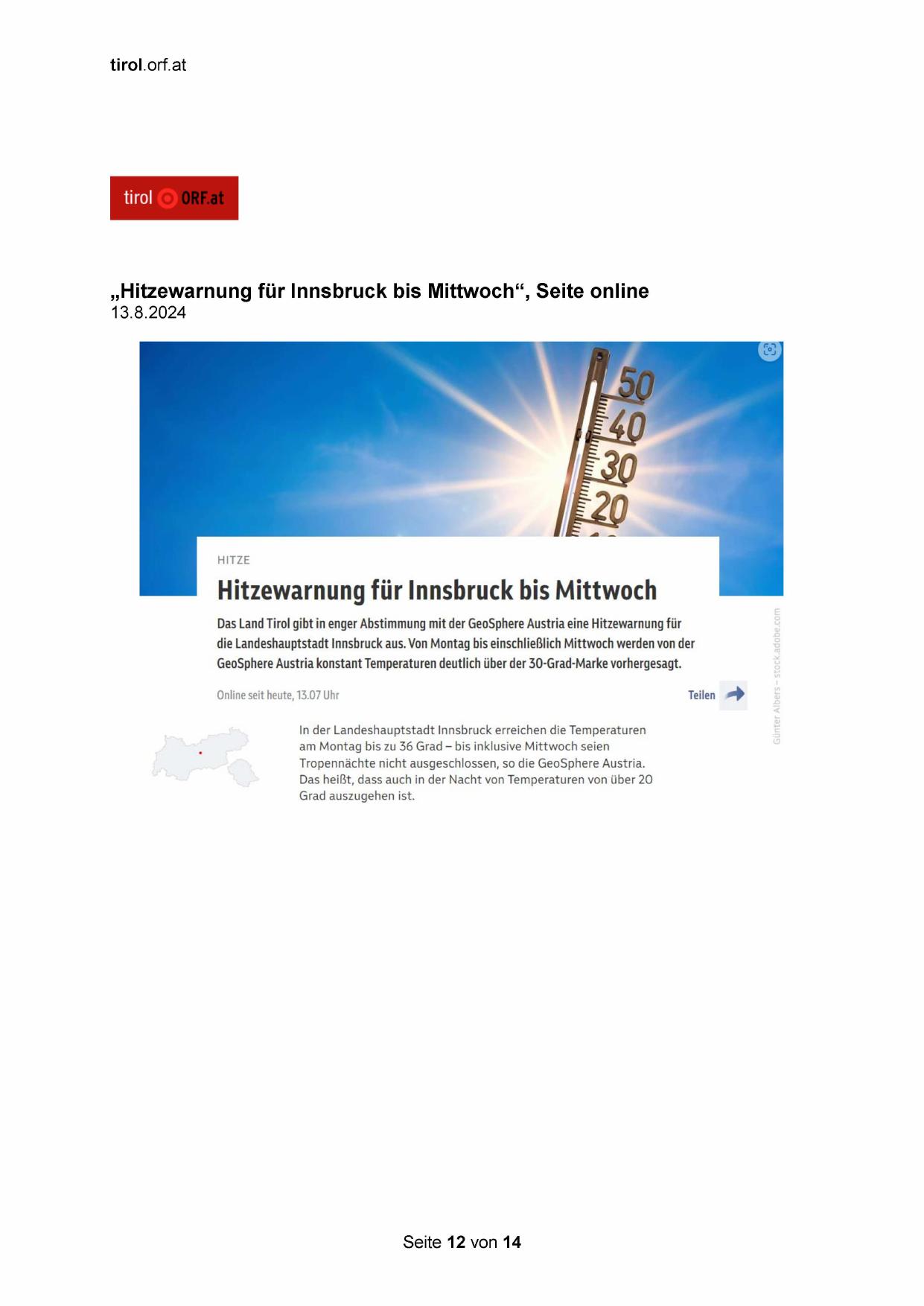 „Hitzewarnung für Innsbruck bis Mittwoch“, Seite online
