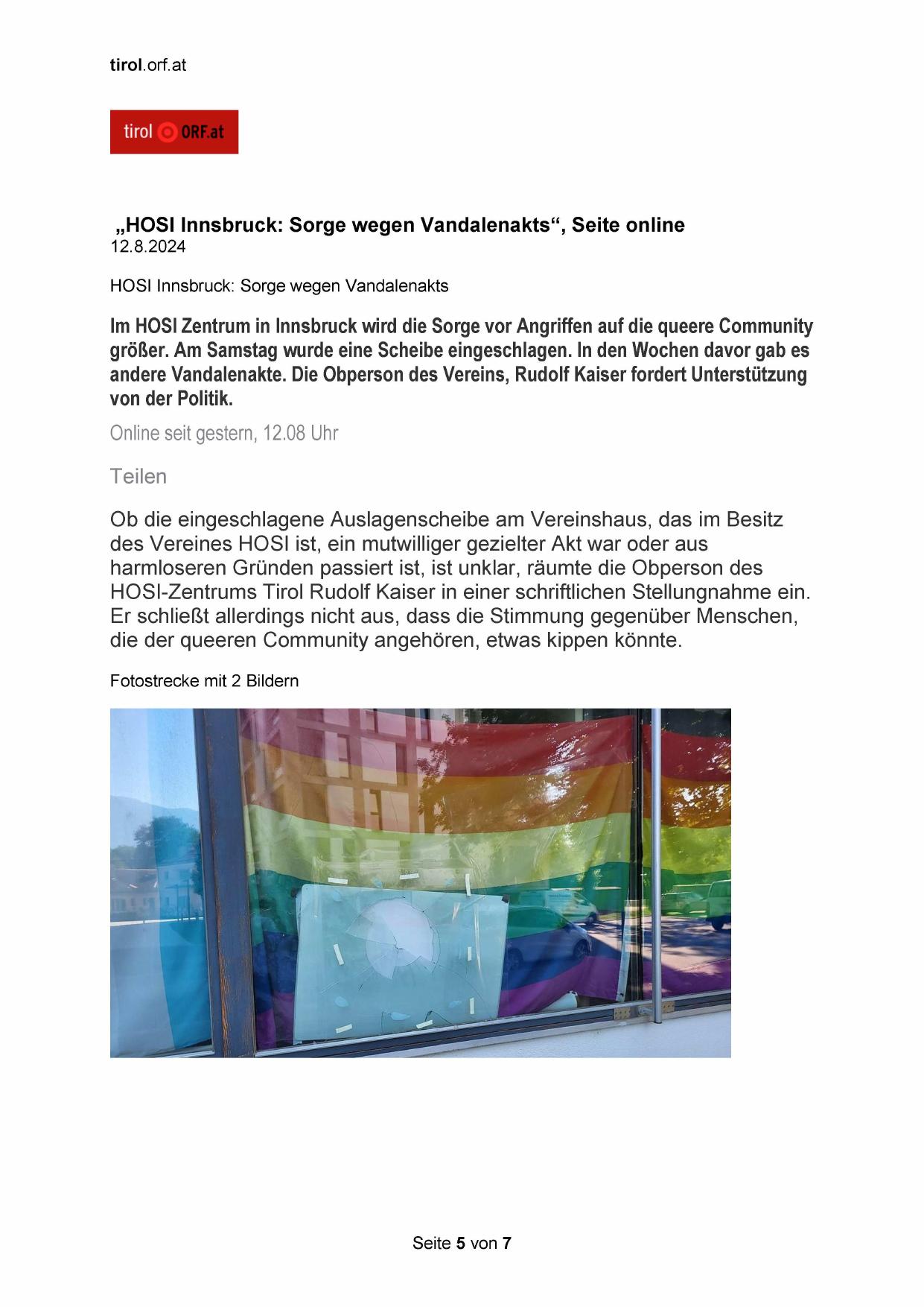 „HOSI Innsbruck: Sorge wegen Vandalenakts“, Seite online
