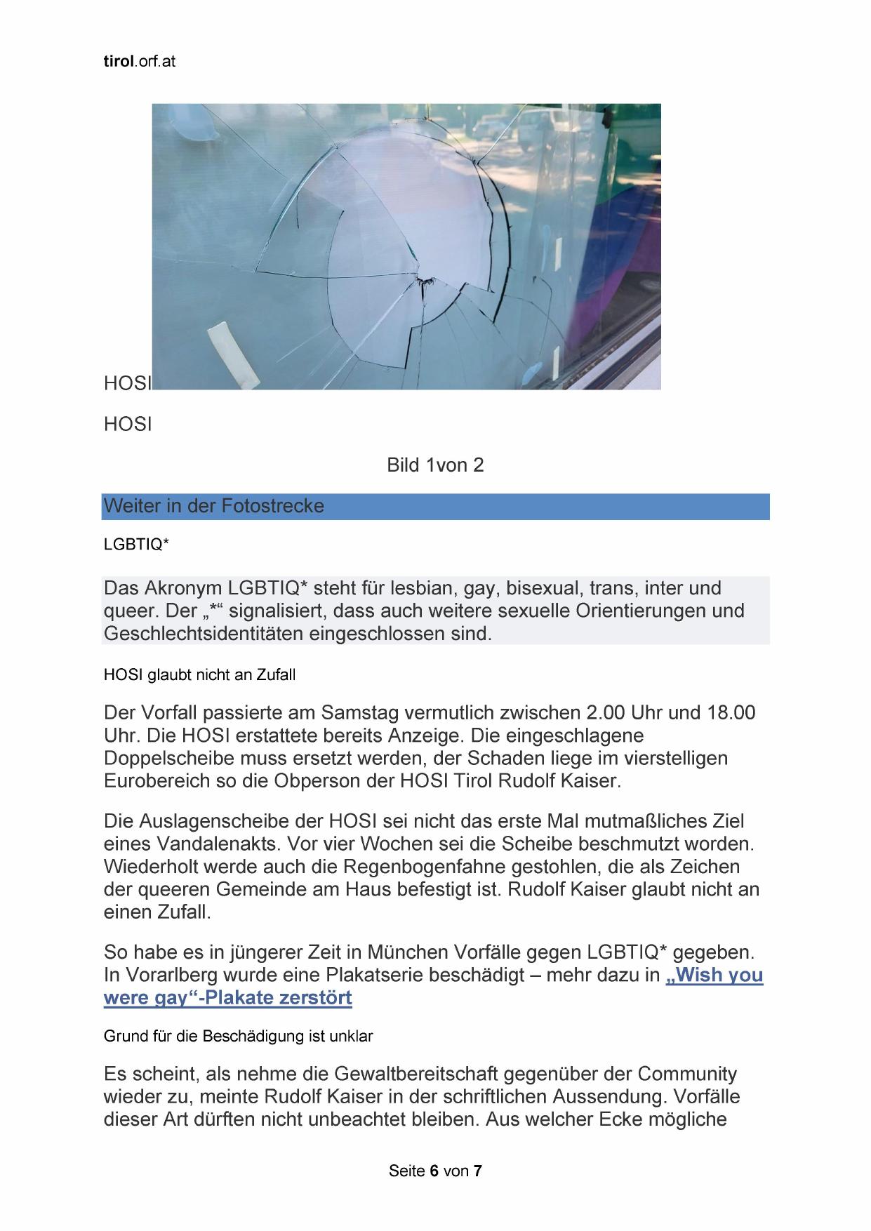 Uhr. Die HOSI erstattete bereits Anzeige. Die eingeschlagene