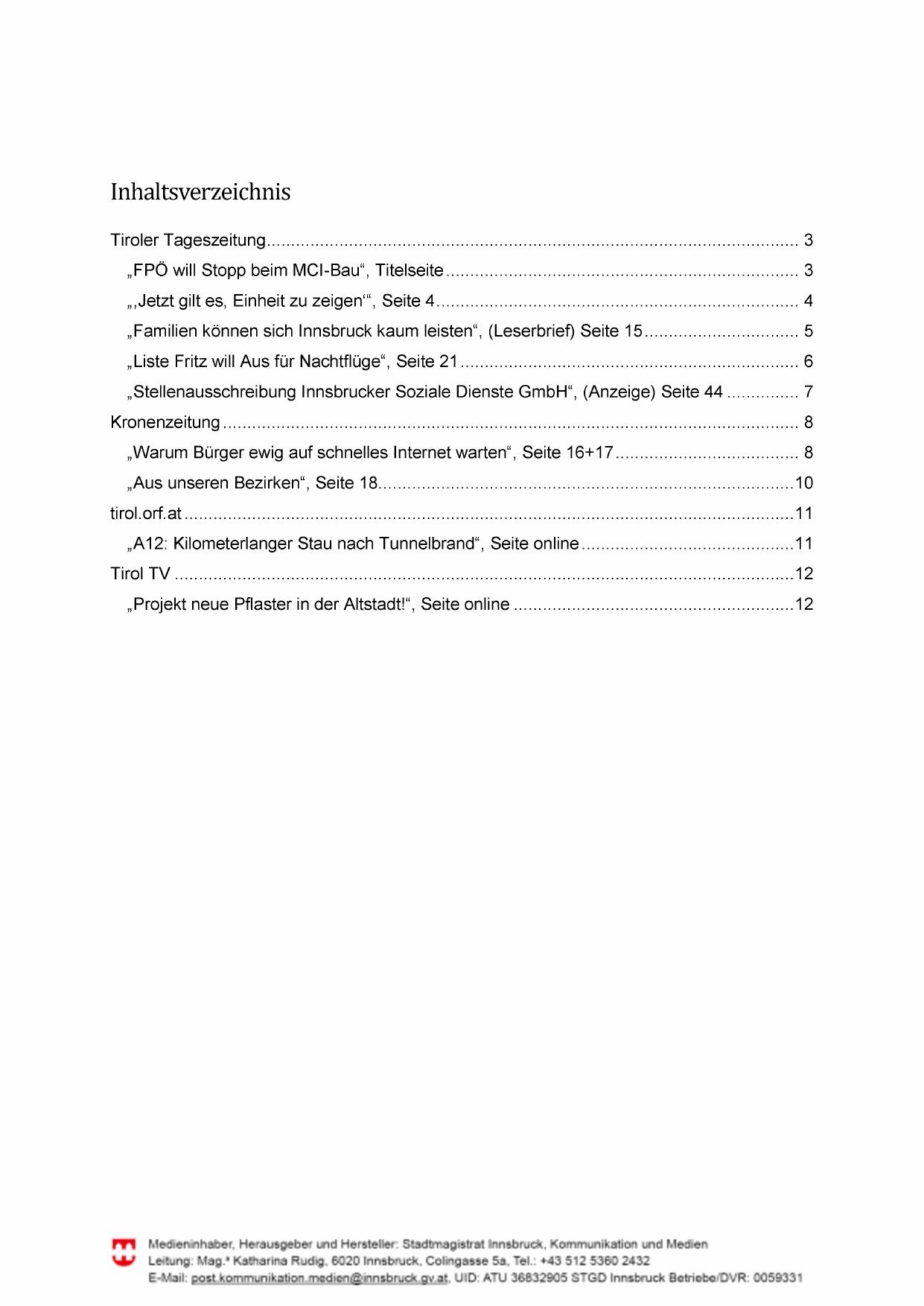 „Stellenausschreibung Innsbrucker Soziale Dienste GmbH“, (Anzeige) Seite 44 ............... 7