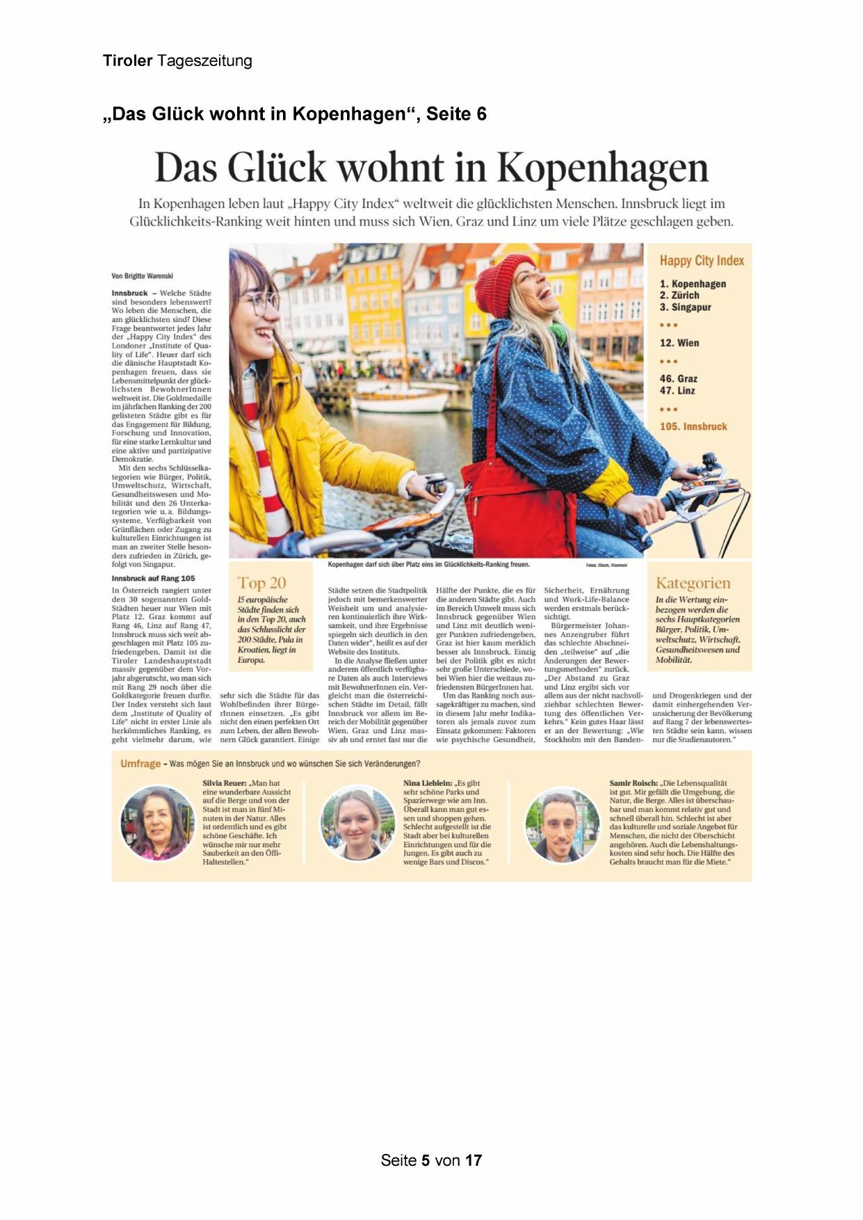 Glücklichkeits-Ranking weit hinten und muss sich Wien, Graz und Linz um viele Plätze geschlagen geben.