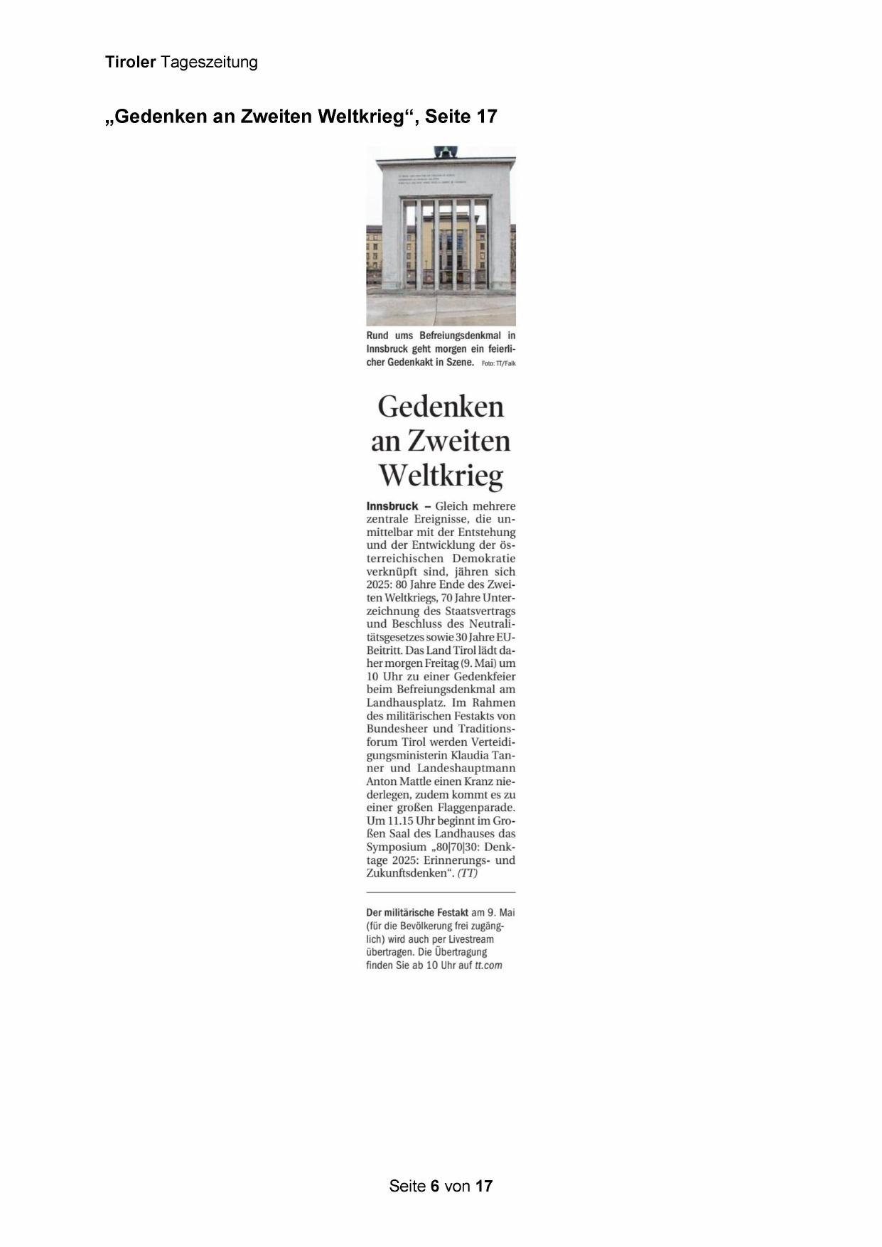 2025: 80 Jahre Ende des Zweiten Weltkriegs, 70 Jahre Unterzeichnung des Staatsvertrags