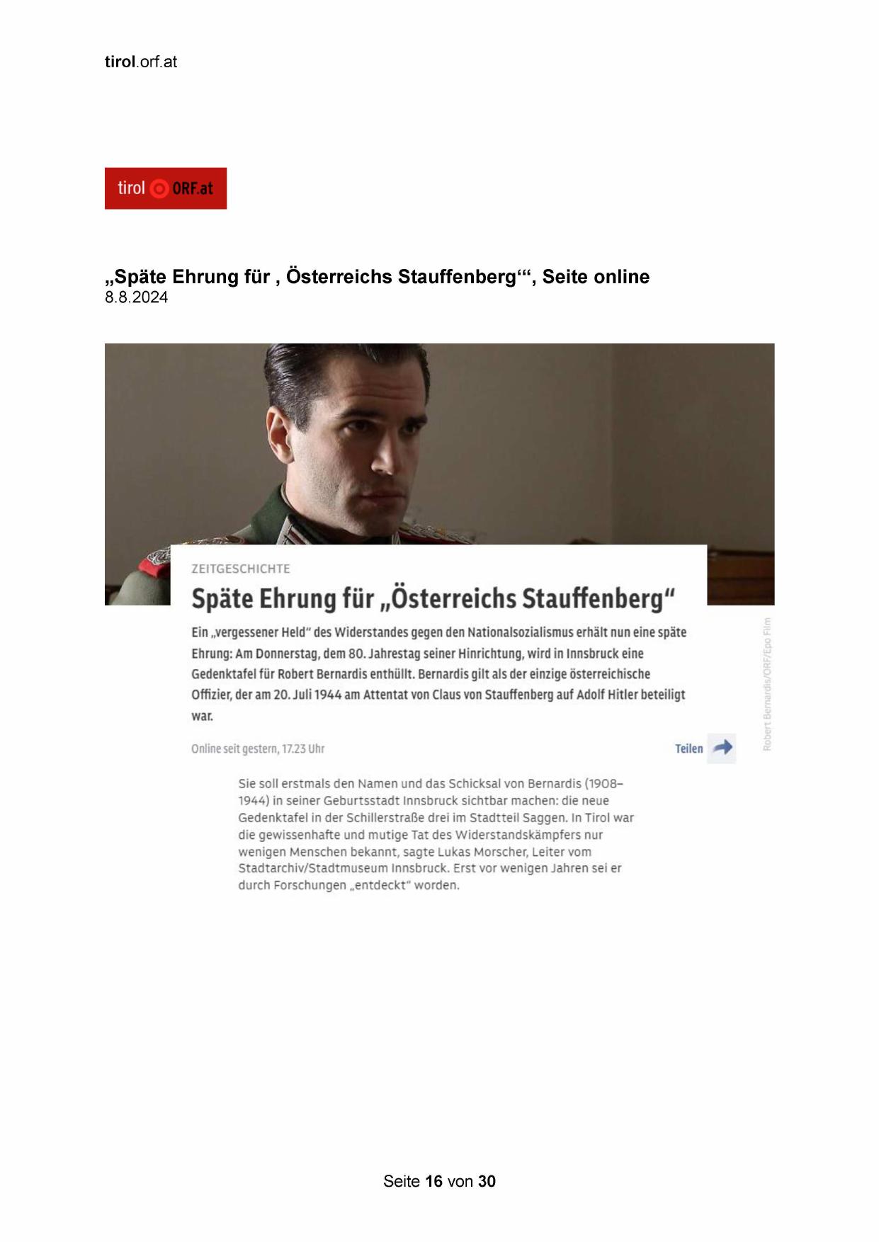 „Späte Ehrung für , Österreichs Stauffenberg‘““, Seite online