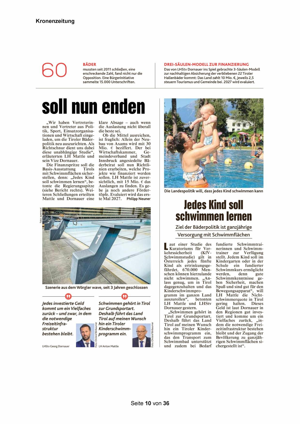 „Wir haben Vertreterinnen und Vertreter aus Politik, Sport, Einsatzorganisationen und Wirtschaft eingeladen, um die Tiroler Bäderpolitik neu auszurichten. Als