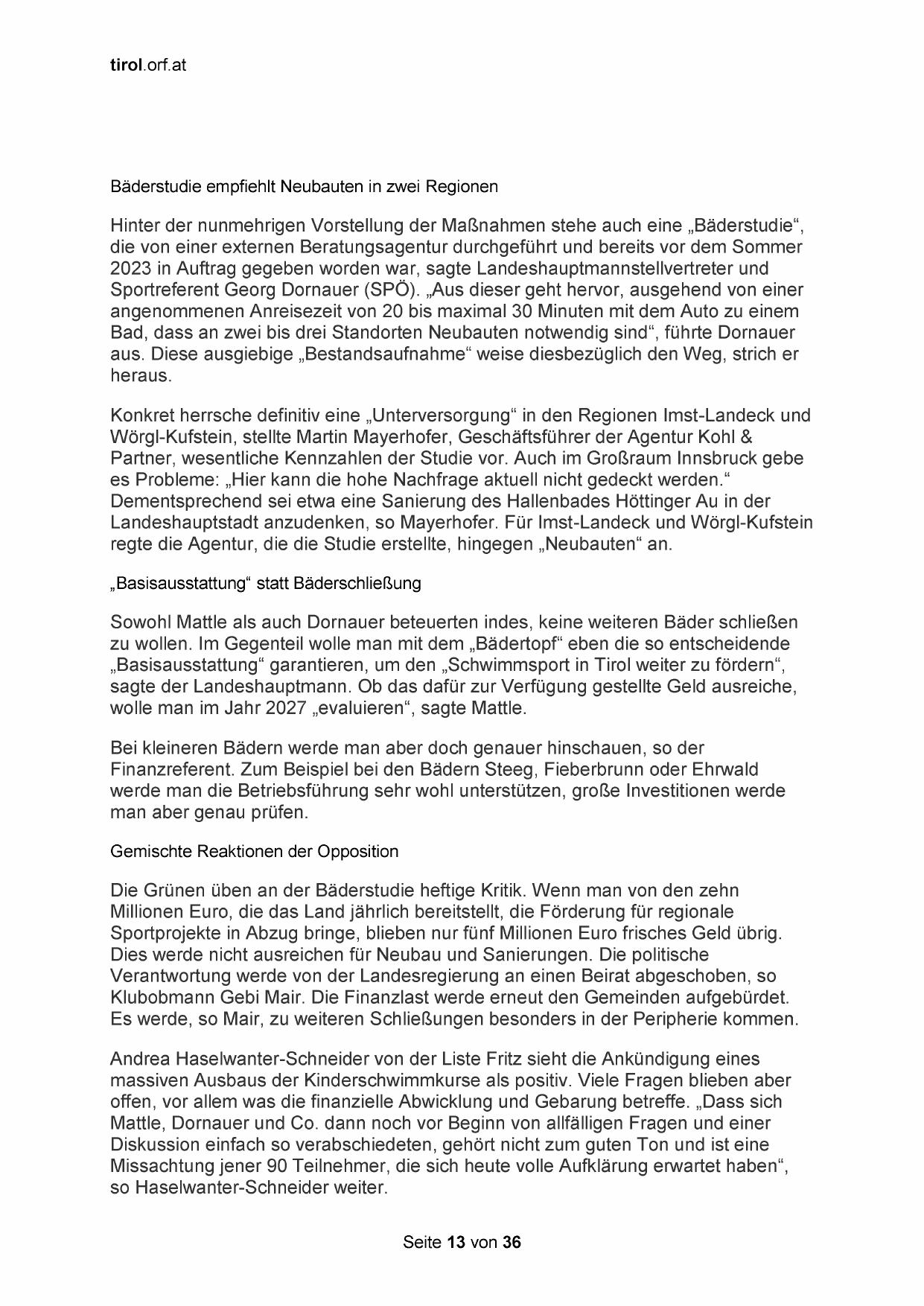 Sowohl Mattle als auch Dornauer beteuerten indes, keine weiteren Bäder schließen