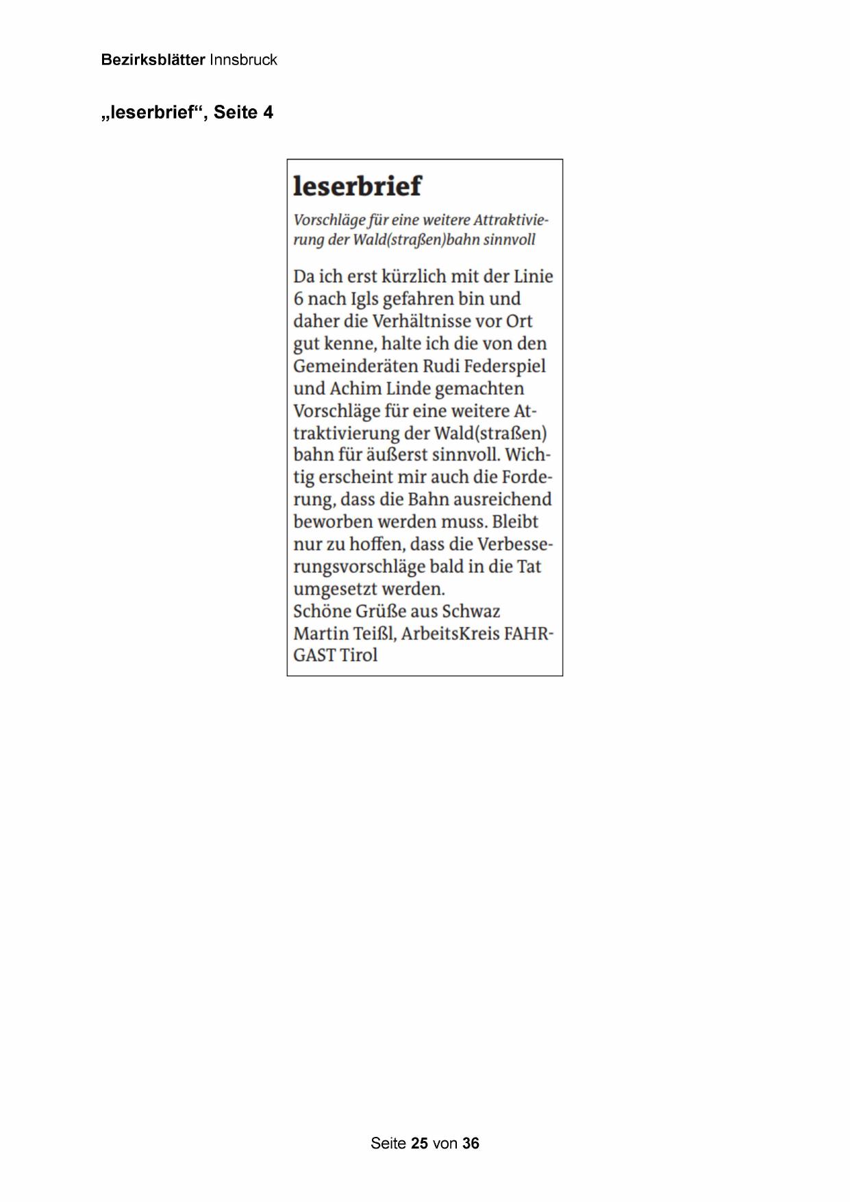 Vorschläge für eine weitere Attraktivierung der Wald(straßen)bahn sinnvoll