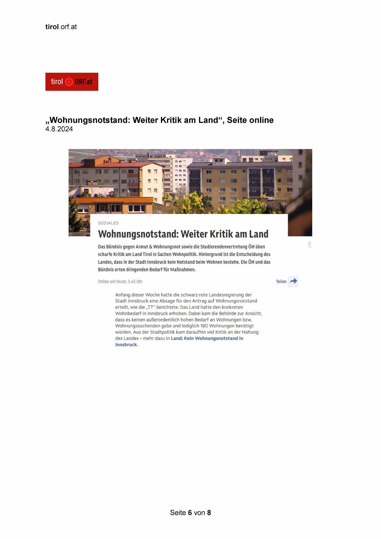 „Wohnungsnotstand: Weiter Kritik am Land“, Seite online