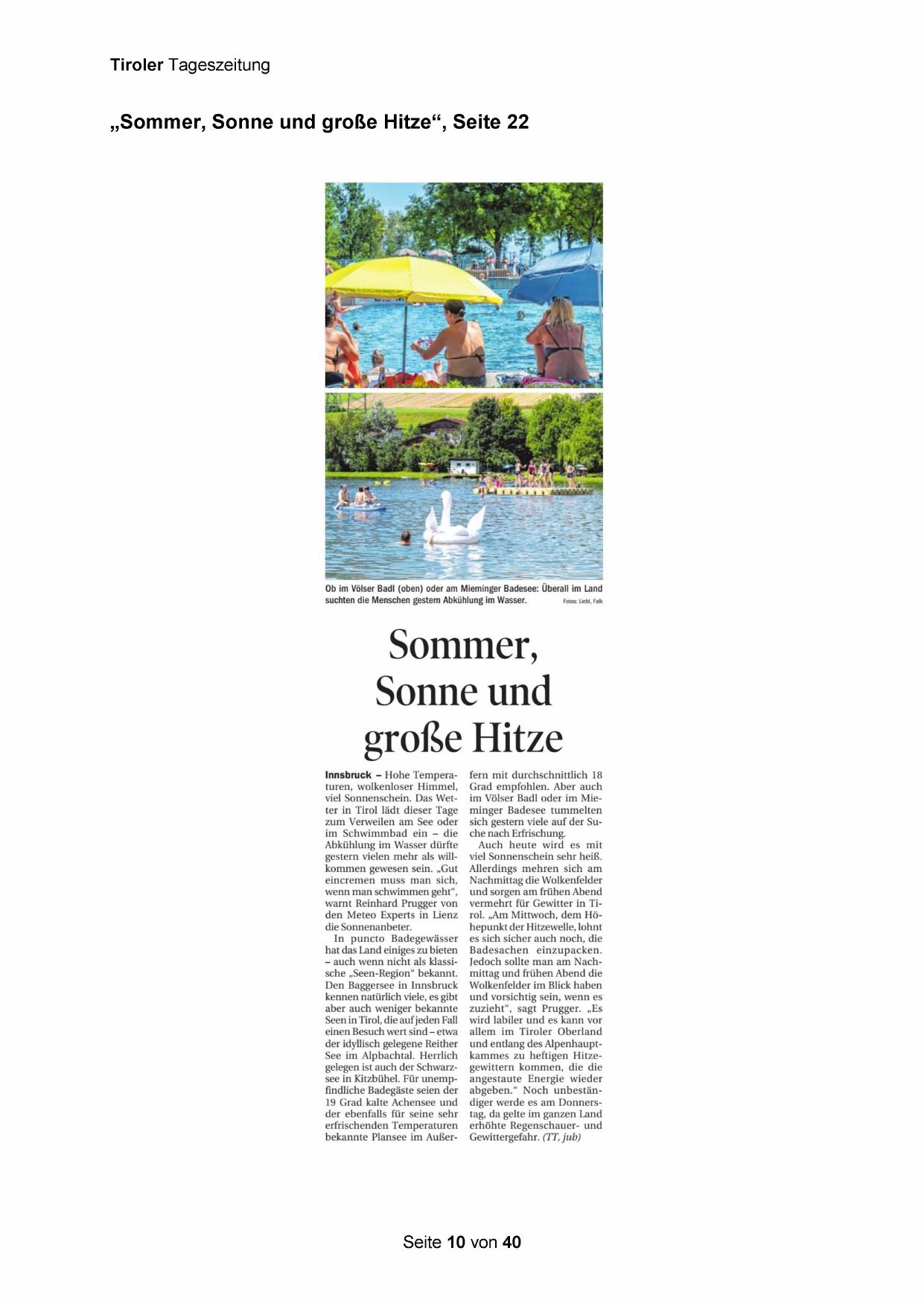 vermehrt für Gewitter in Tirol. „Am Mittwoch, dem Höhepunkt der Hitzewelle, lohnt