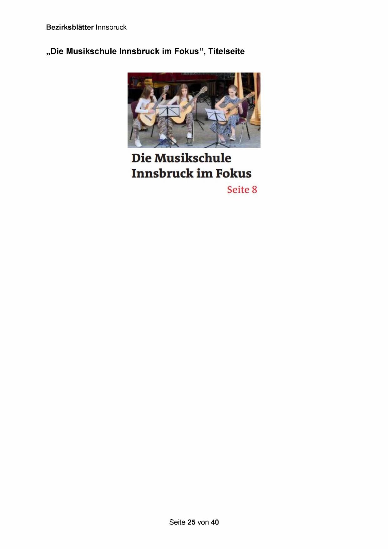 „Die Musikschule Innsbruck im Fokus“, Titelseite