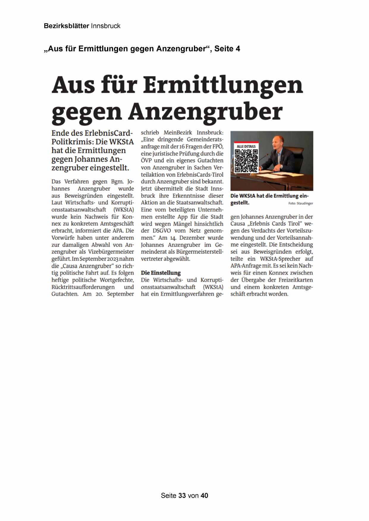 „Aus für Ermittlungen gegen Anzengruber“, Seite 4