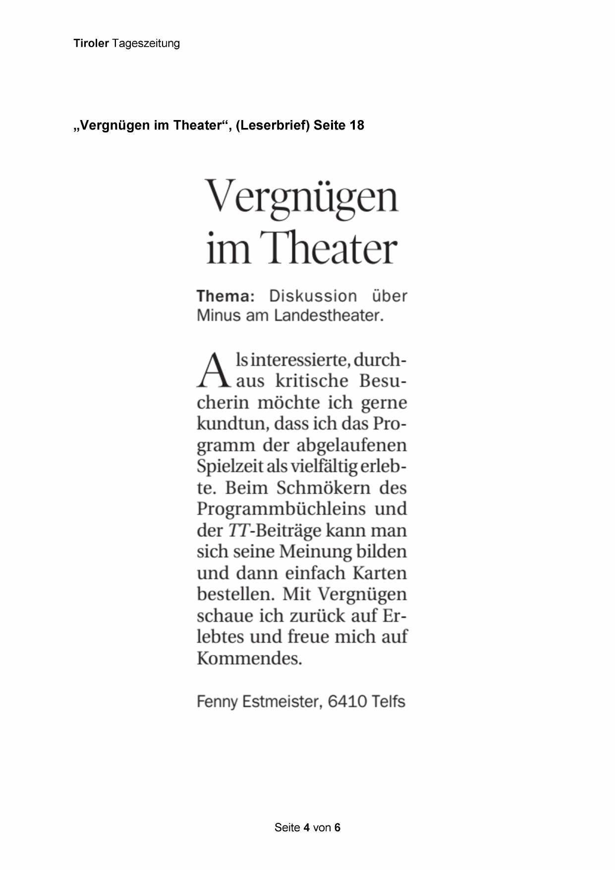 „Vergnügen im Theater“, (Leserbrief) Seite 18