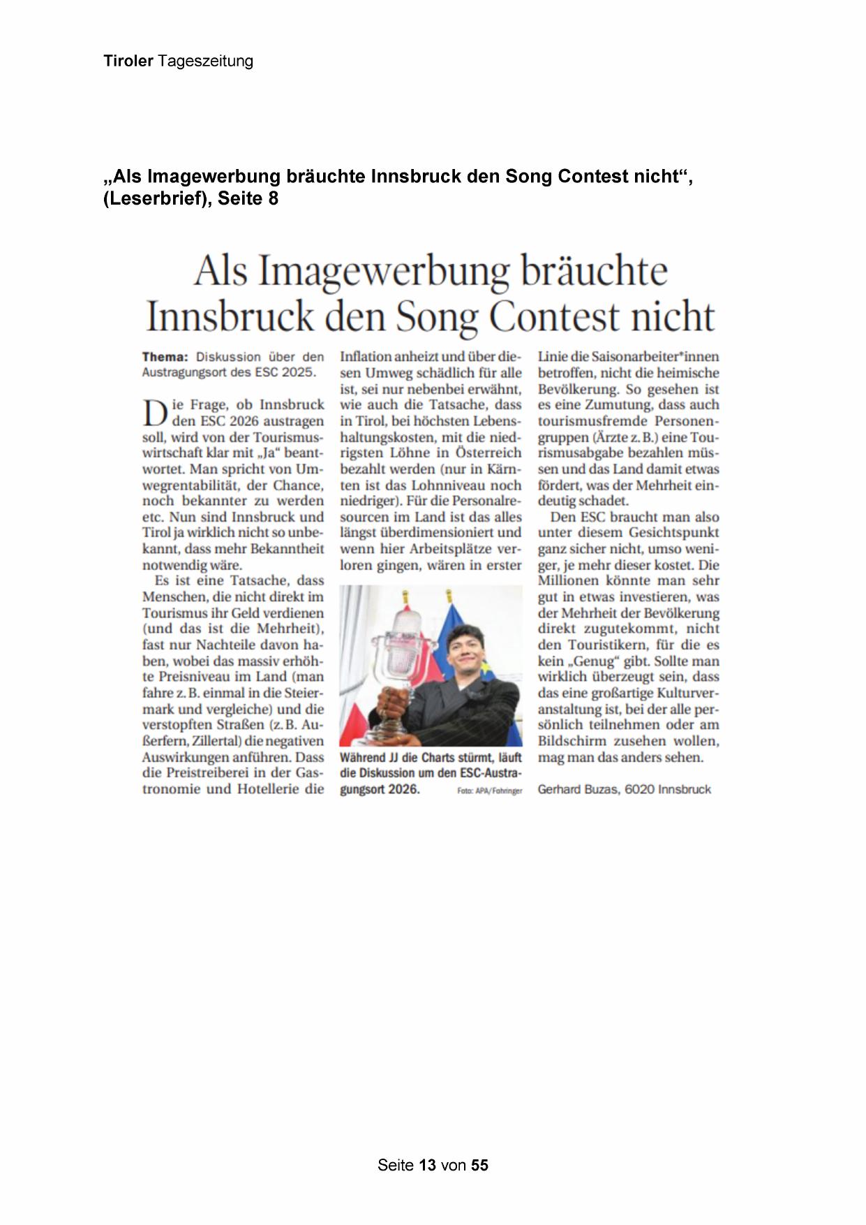„Als Imagewerbung bräuchte Innsbruck den Song Contest nicht“,
