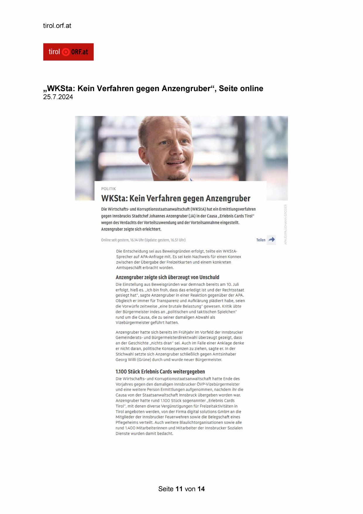 „WKSta: Kein Verfahren gegen Anzengruber“, Seite online