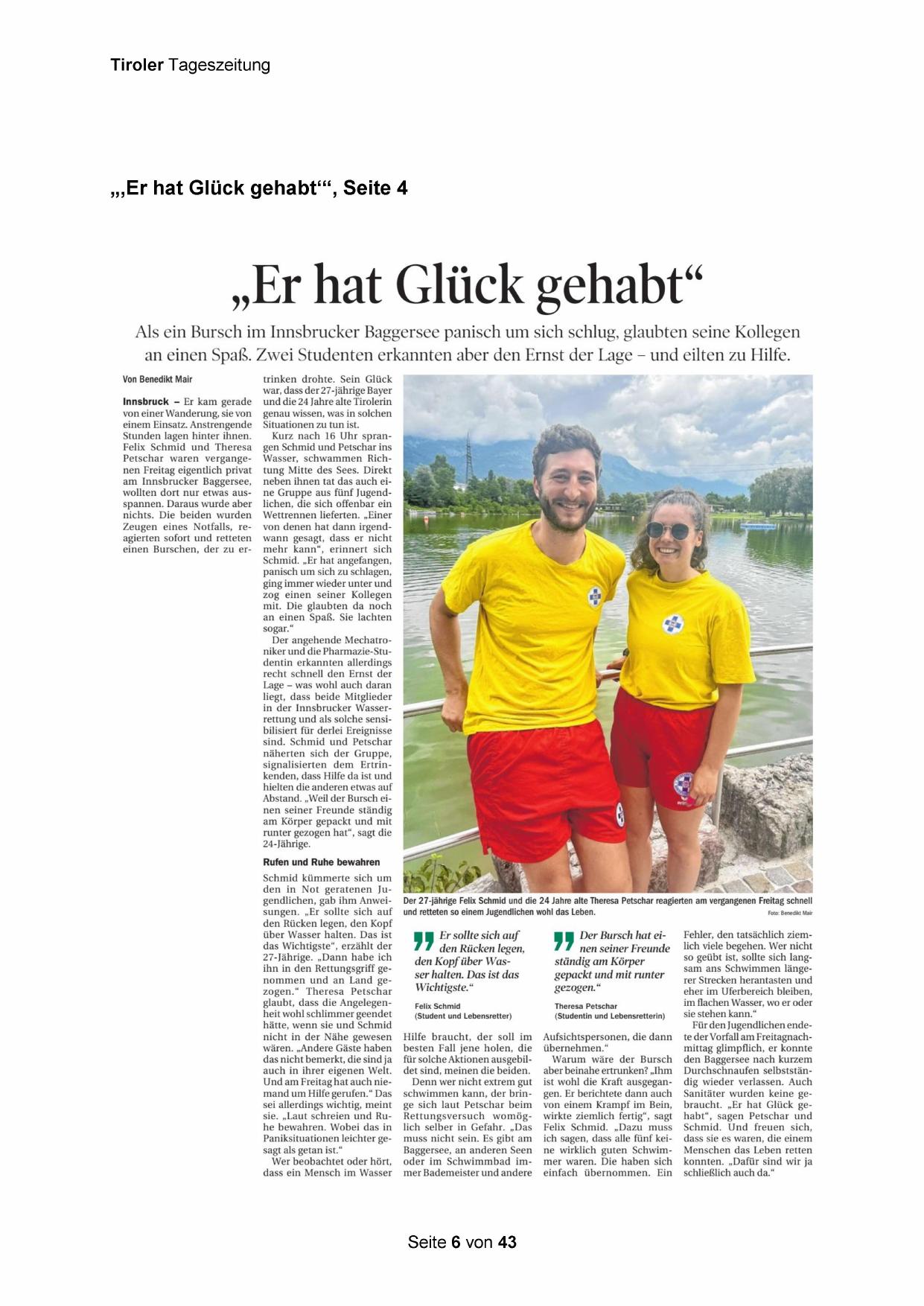 ihn in den Rettungsgriff genommen und an Land gezogen.“ Theresa Petschar