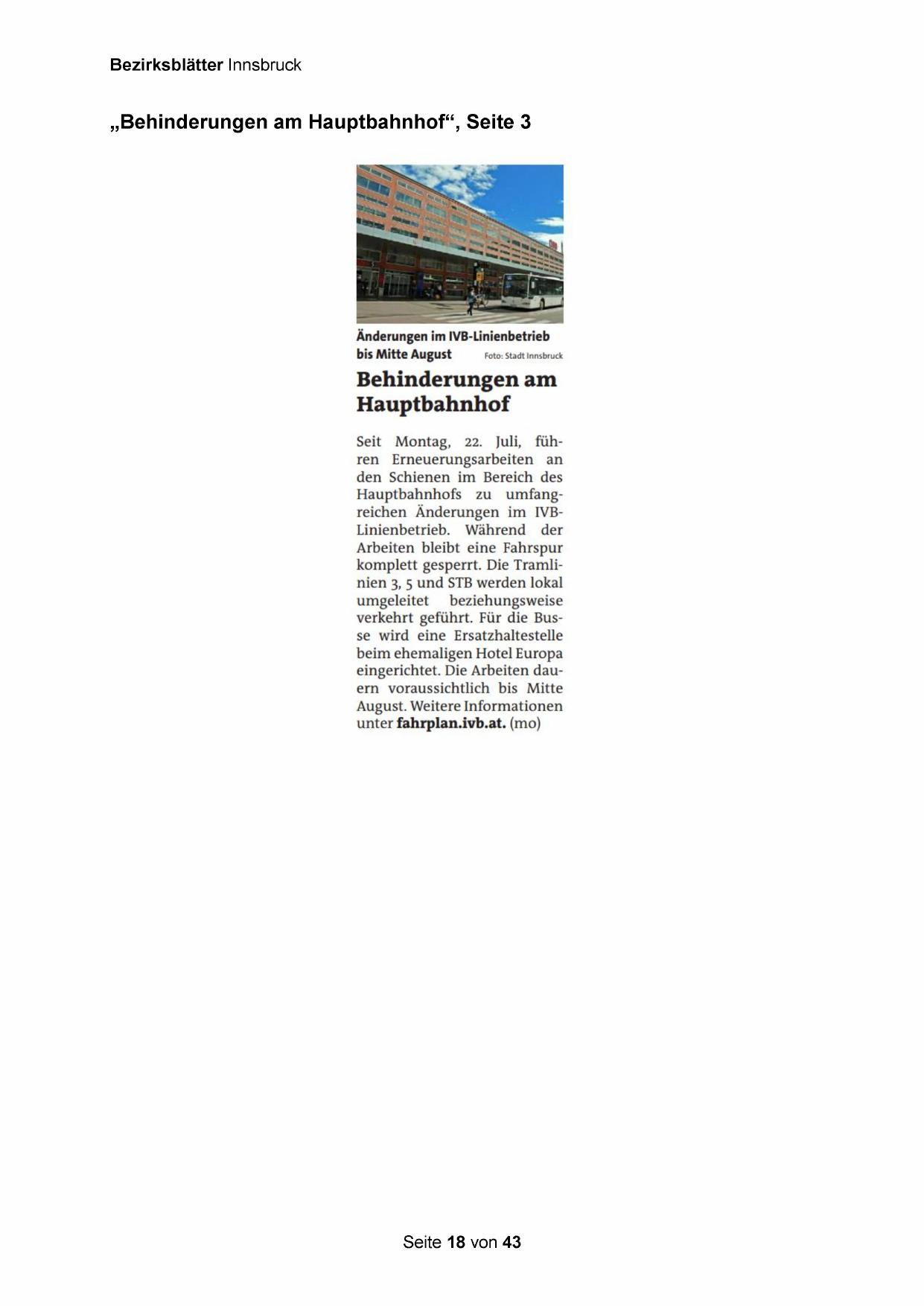 Hauptbahnhofs zu umfangreichen Änderungen im IVB-