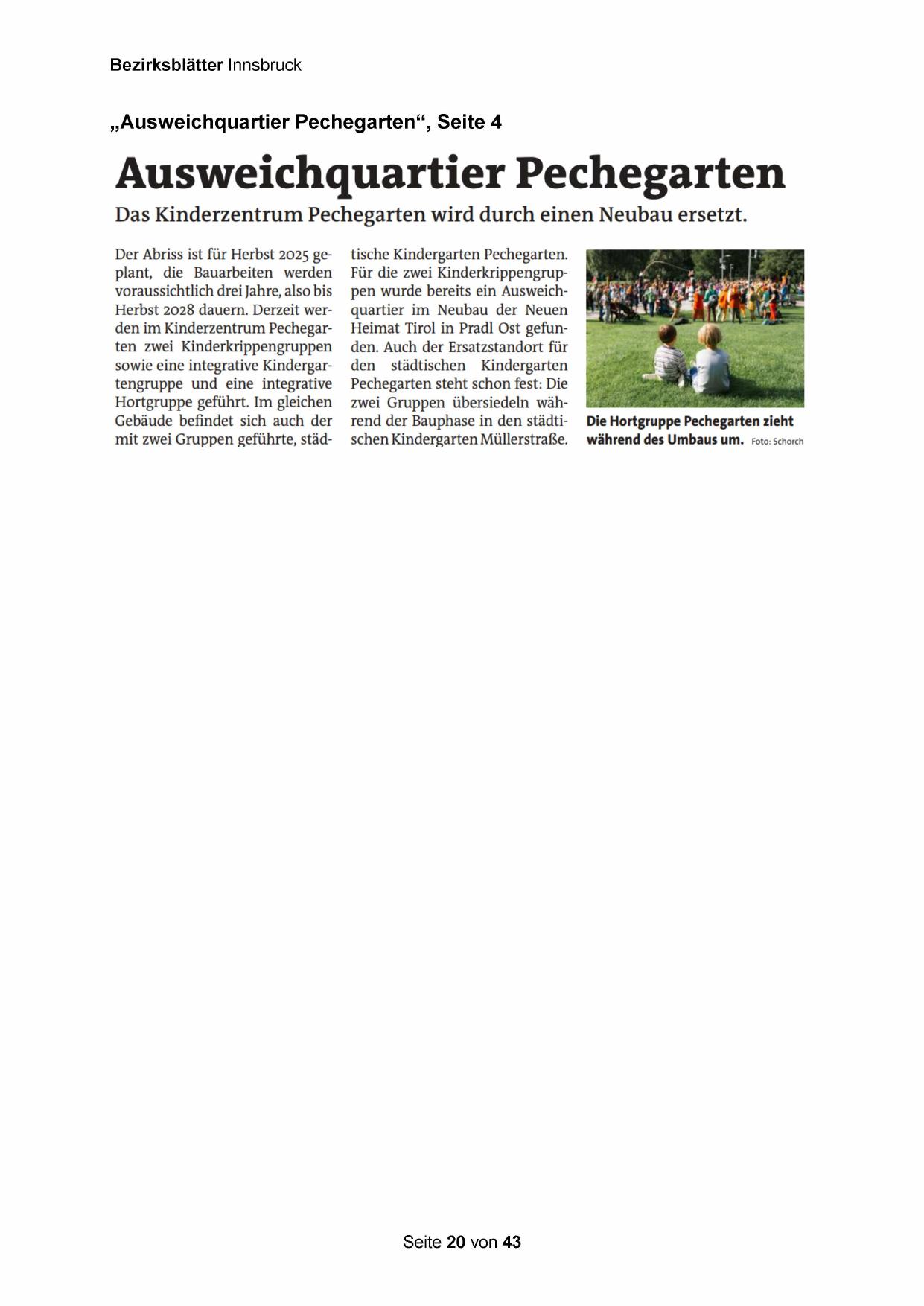 Herbst 2028 dauern. Derzeit werden im Kinderzentrum Pechegarten zwei Kinderkrippengruppen