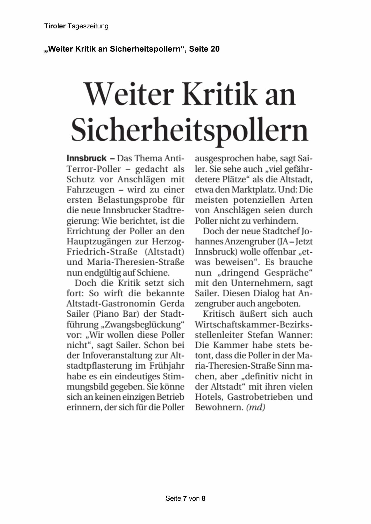 „Weiter Kritik an Sicherheitspollern“, Seite 20
