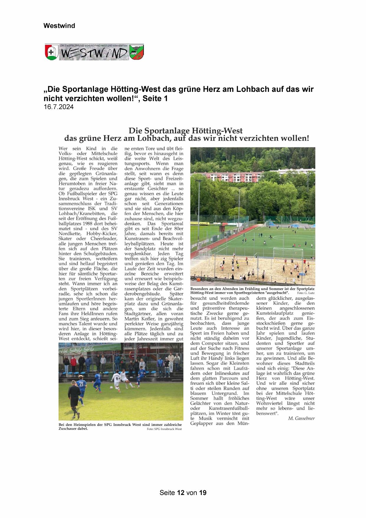 „Die Sportanlage Hötting-West das grüne Herz am Lohbach auf das wir