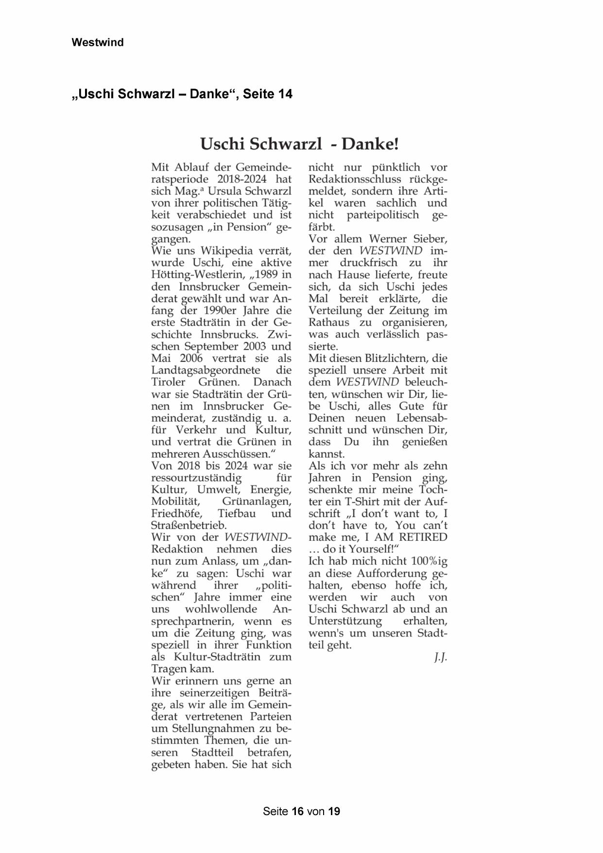 „Uschi Schwarzl —- Danke“*“, Seite 14