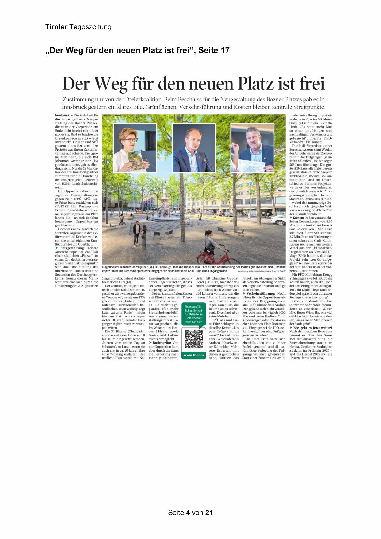 sagten zur Platzgestaltung dagegen Nein (FPÖ, KPÖ, Liste Fritz) bzw. enthielten sich