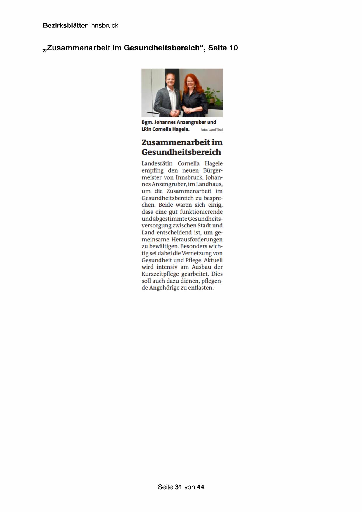 empfing den neuen Bürgermeister von Innsbruck, Johannes Anzengruber, im Landhaus,