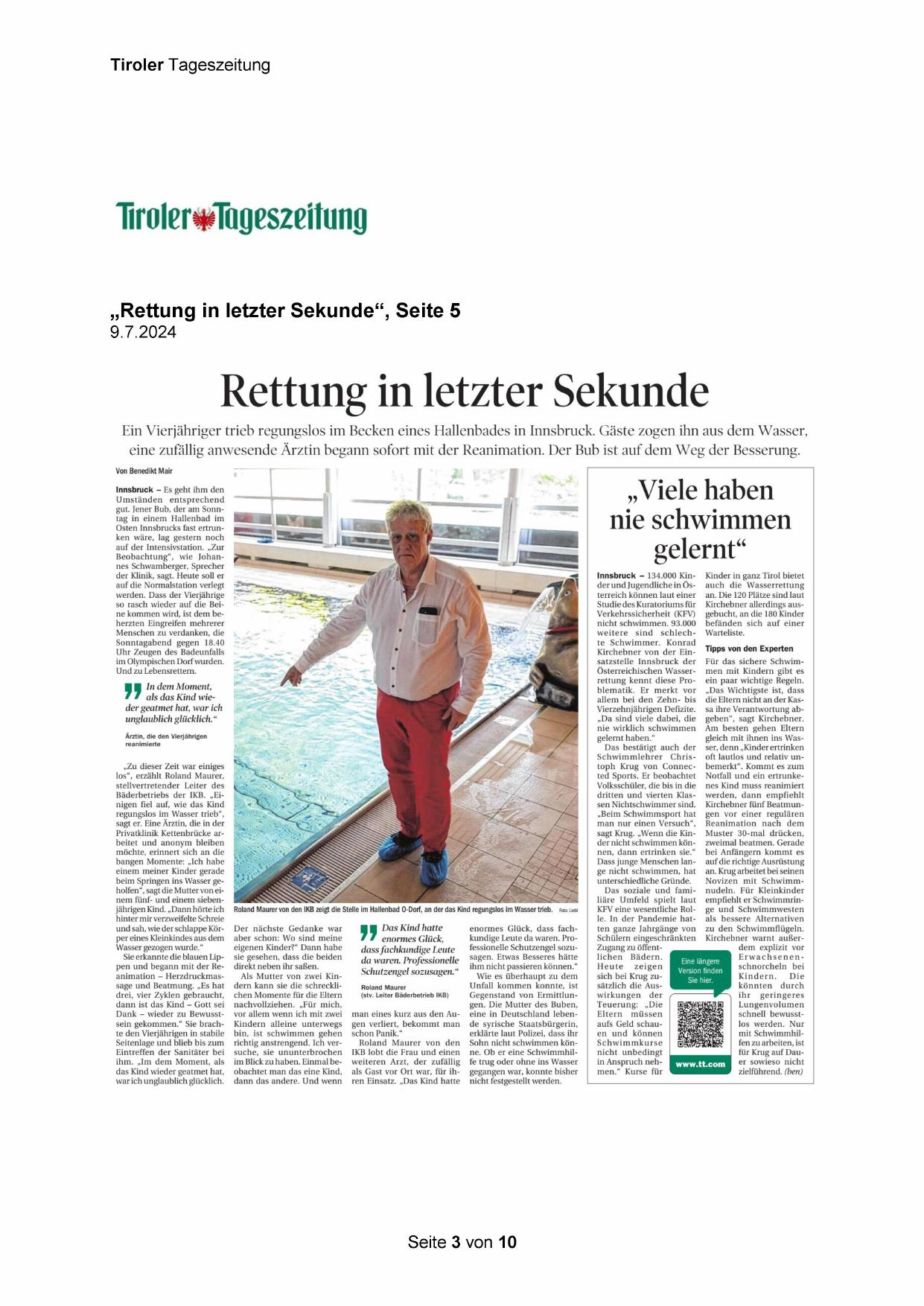 Ein Vierjähriger trieb regungslos im Becken eines Hallenbades in Innsbruck. Gäste zogen ihn aus dem Wasser,