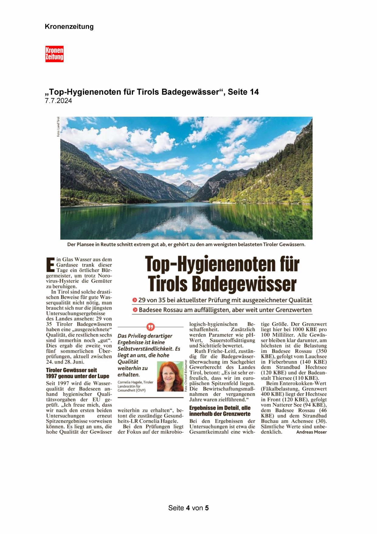 „Top-Hygienenoten für Tirols Badegewässer“, Seite 14