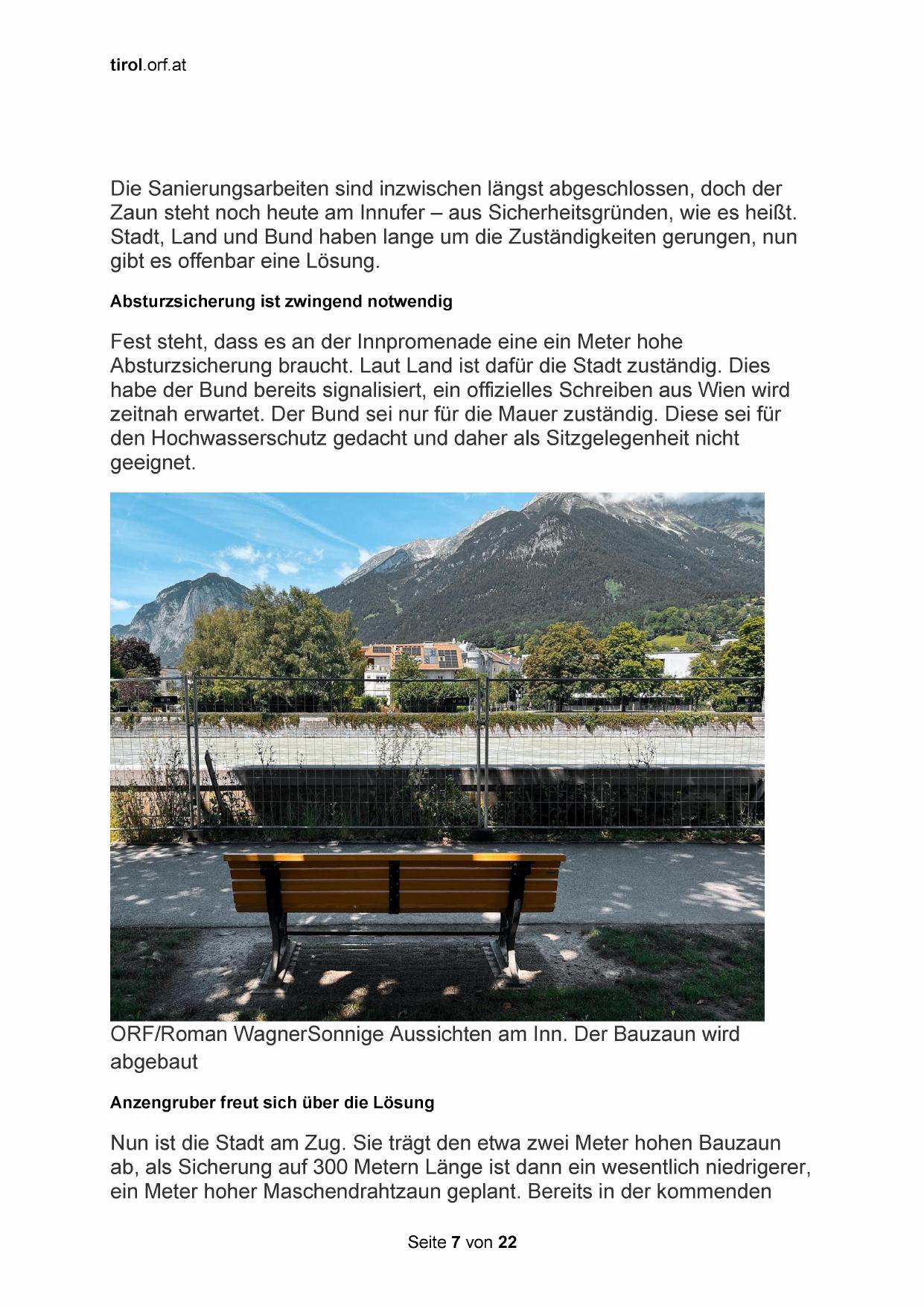 Zaun steht noch heute am Innufer — aus Sicherheitsgründen, wie es heißt.