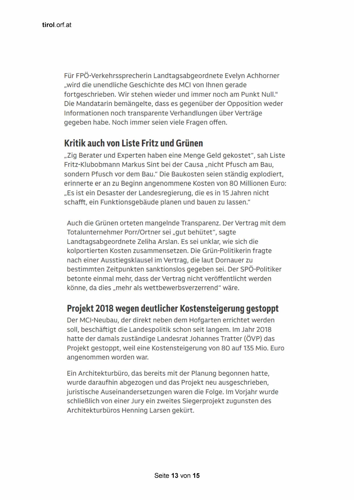 Totalunternehmer Porr/Ortner sei „gut behütet“, sagte