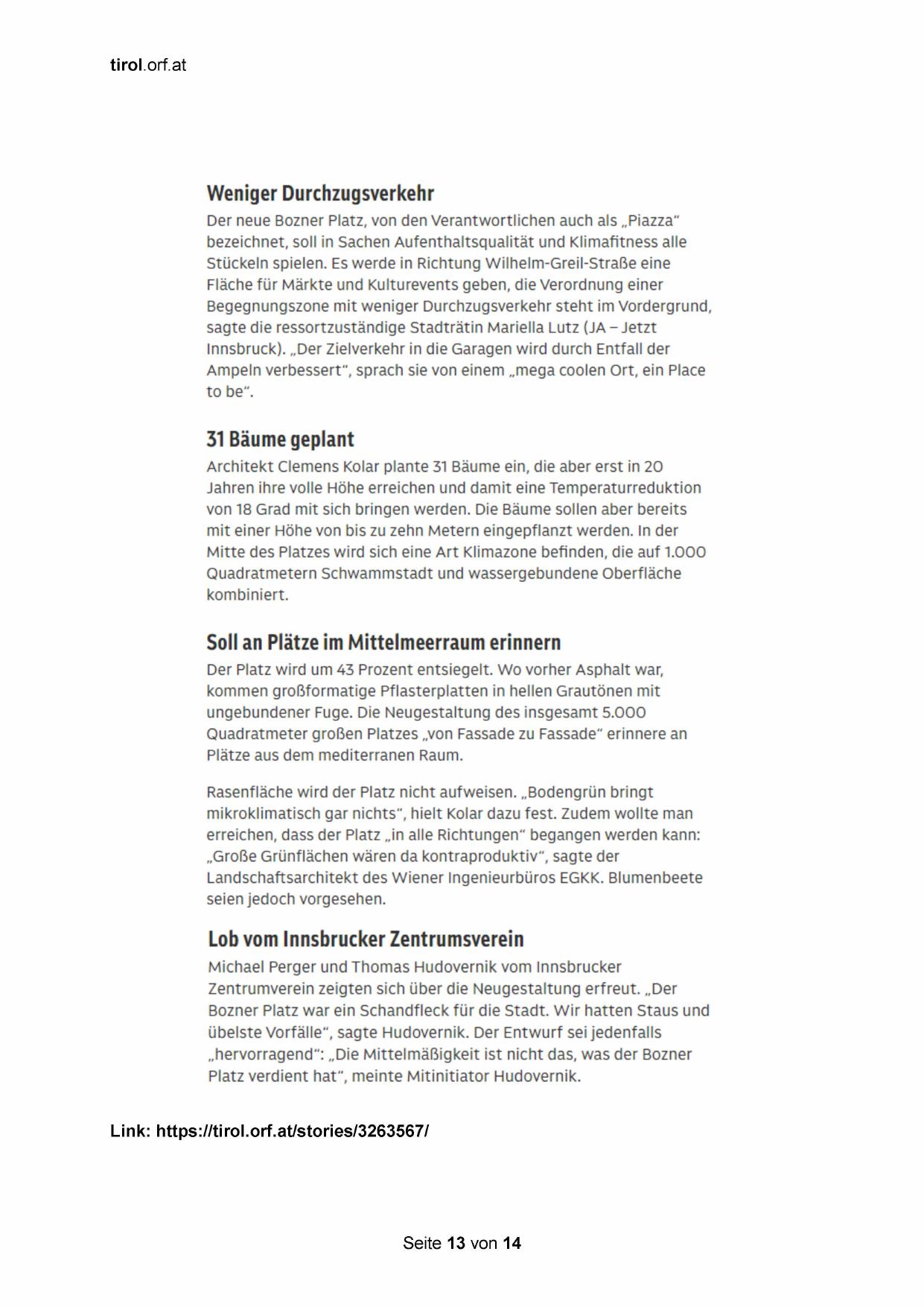 Innsbruck). „Der Zielverkehr in die Garagen wird durch Entfall der