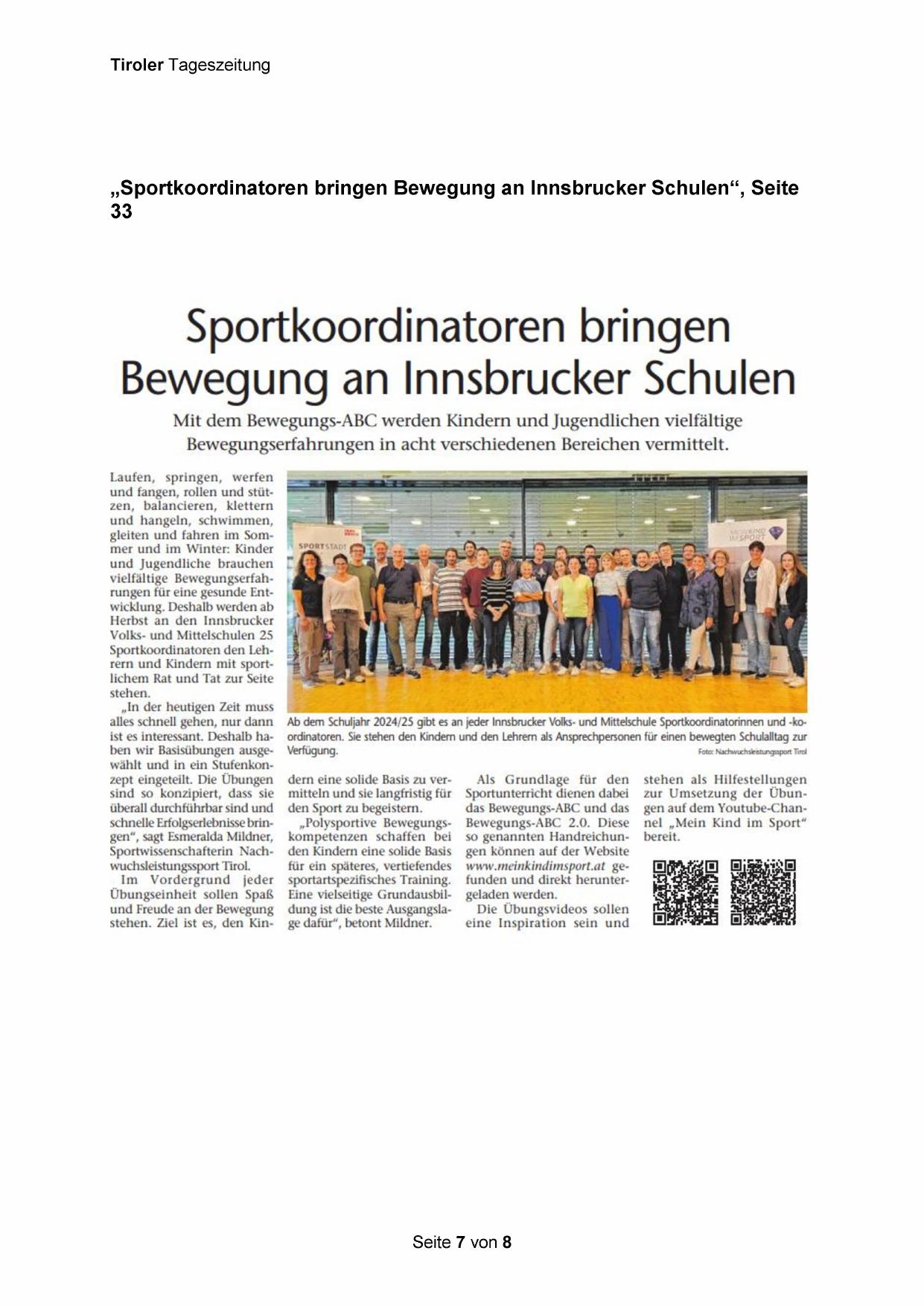 „Sportkoordinatoren bringen Bewegung an Innsbrucker Schulen“, Seite