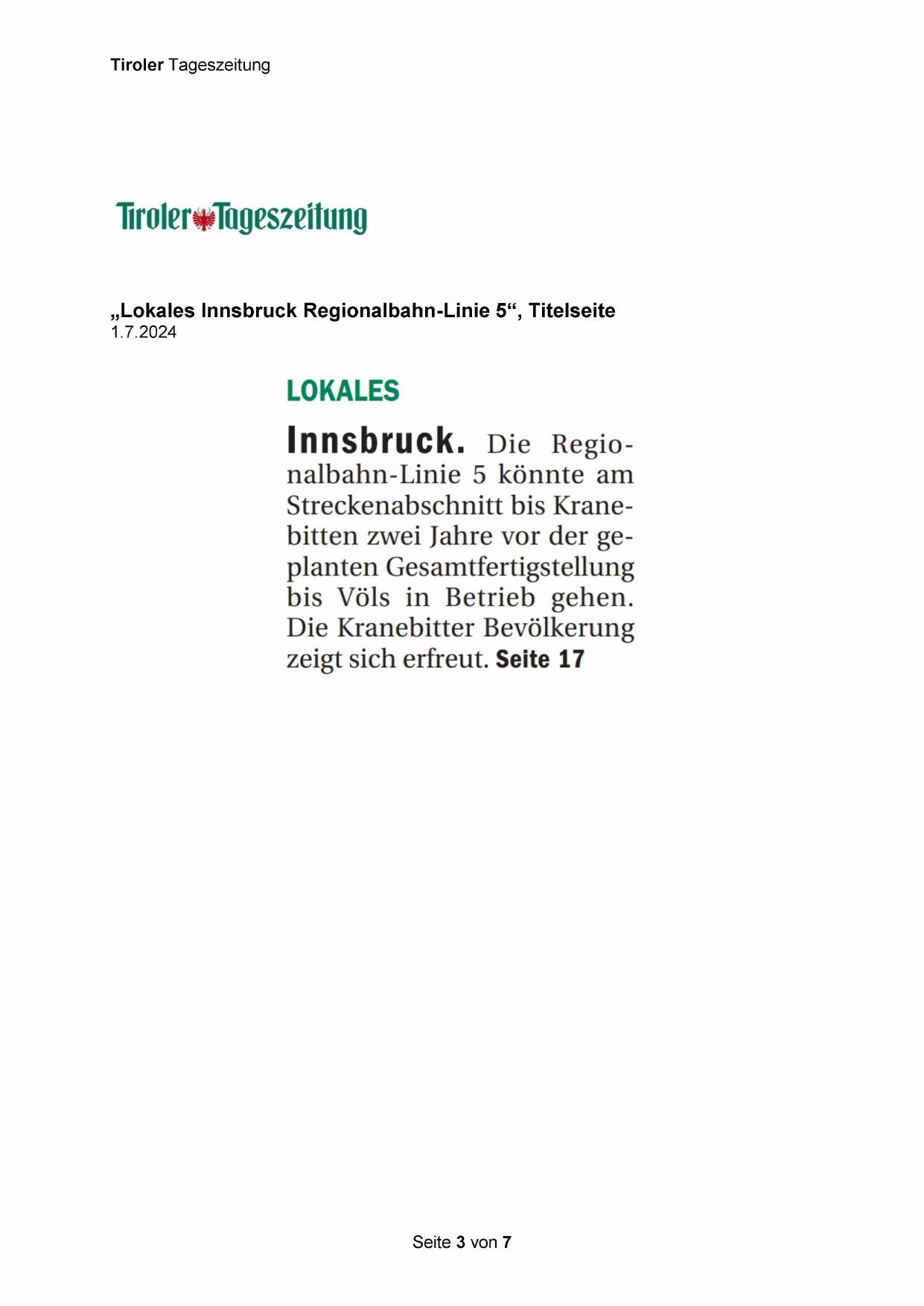 „Lokales Innsbruck Regionalbahn-Linie 5“, Titelseite