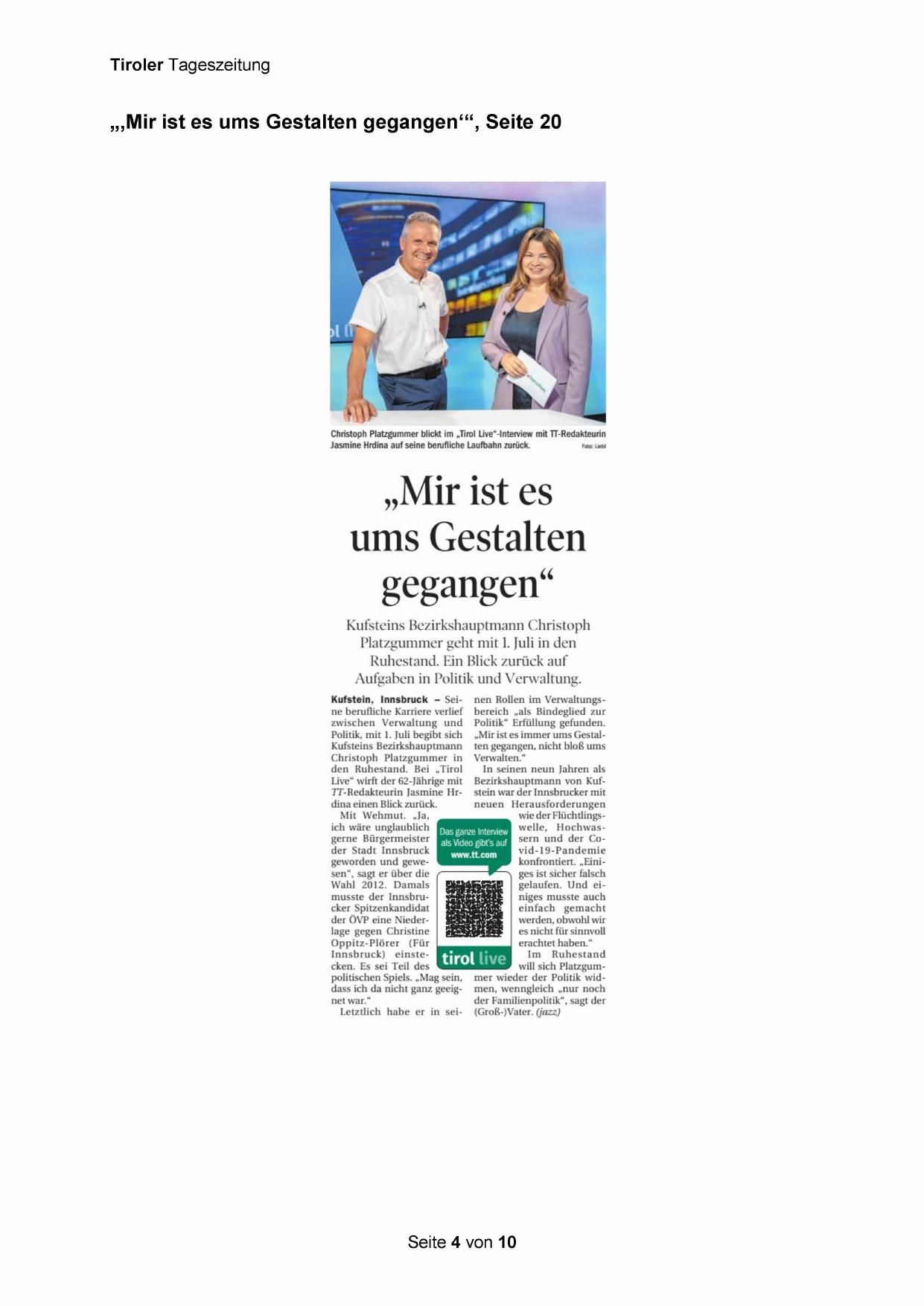 Christoph Platzgummer blickt im „Tirol Live“-Interview mit TT-Redakteurin