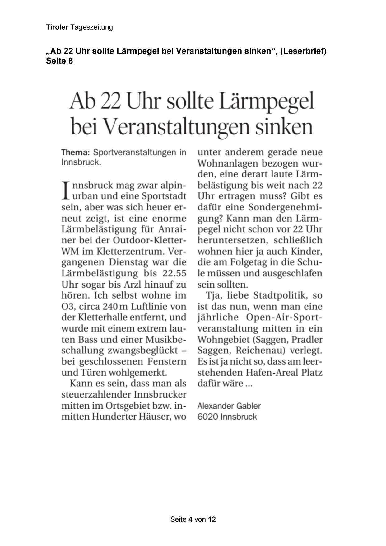 „Ab 22 Uhr sollte Lärmpegel bei Veranstaltungen sinken“, (Leserbrief)