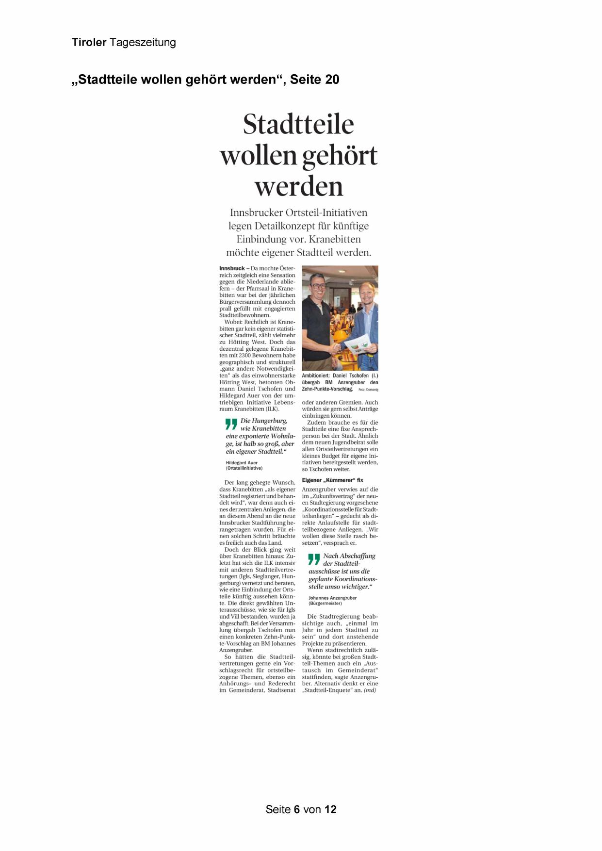 mit anderen Stadtteilvertretungen (Igls, Sieglanger, Hungerburg) vernetzt und beraten,