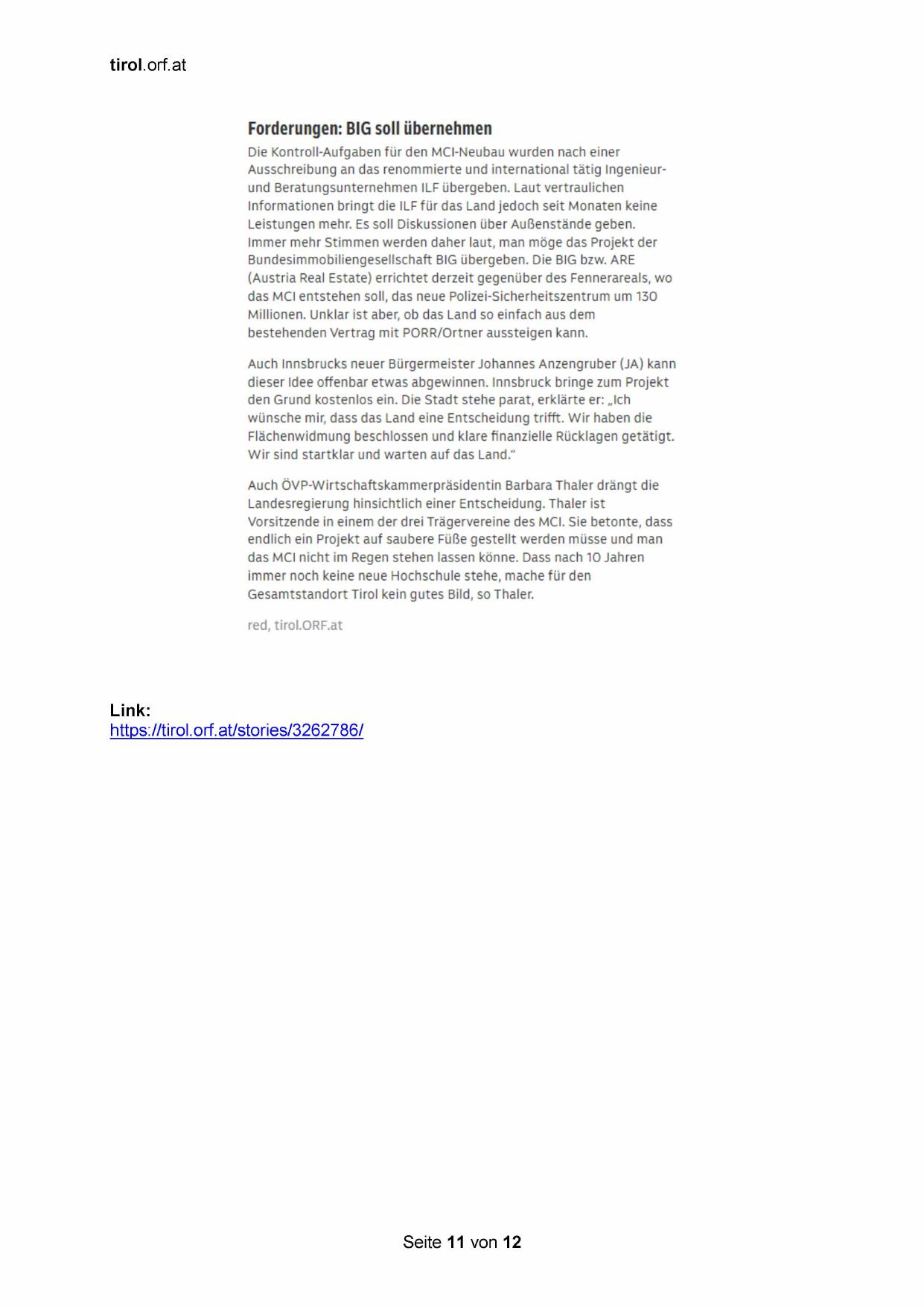 Die Kontroll-Aufgaben für den MCI-Neubau wurden nach einer