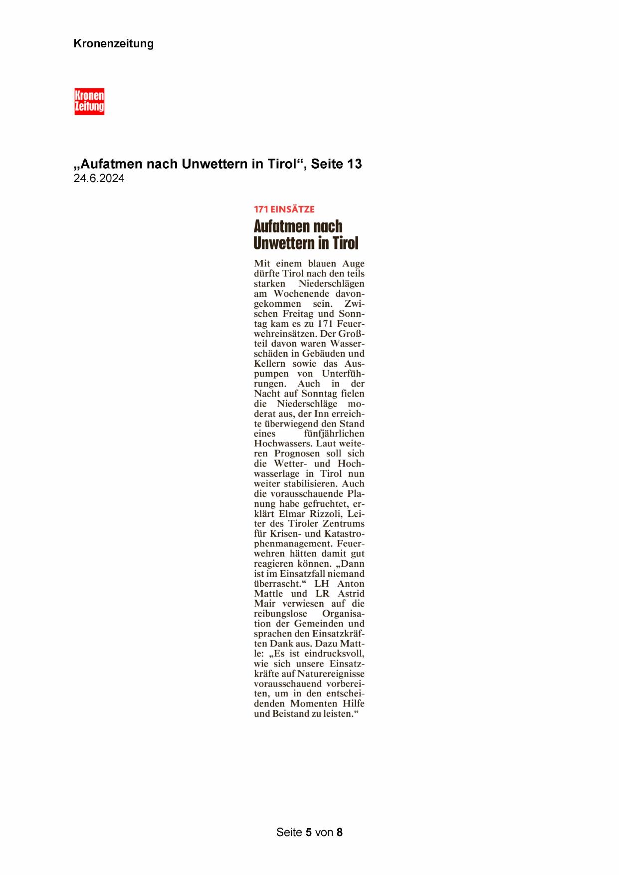 die Wetter- und Hochwasserlage in Tirol nun