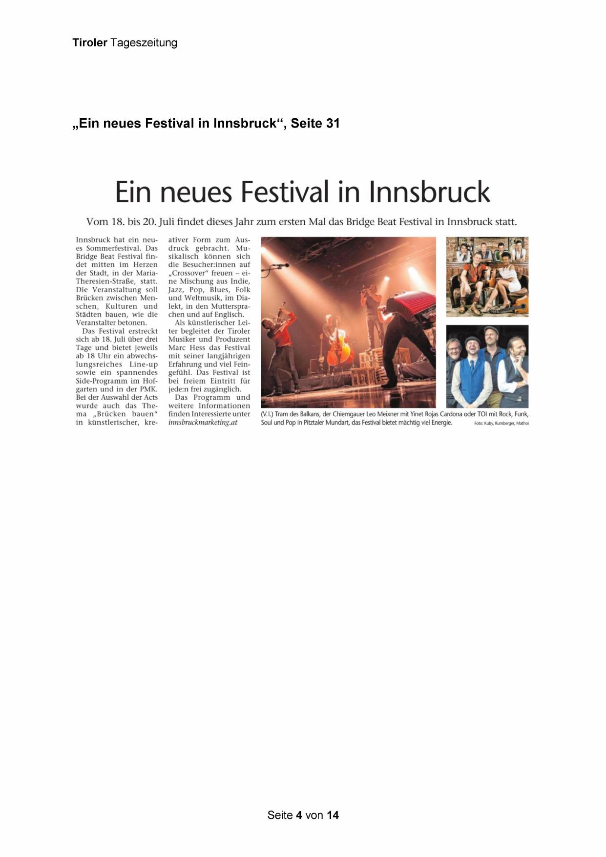 Vom 18. bis 20. Juli findet dieses Jahr zum ersten Mal das Bridge Beat Festival in Innsbruck statt.