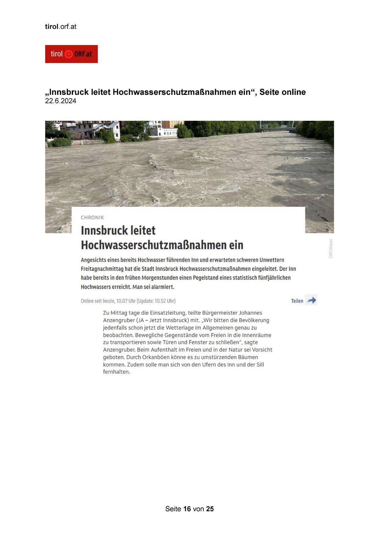 „Innsbruck leitet Hochwasserschutzmaßnahmen ein“, Seite online