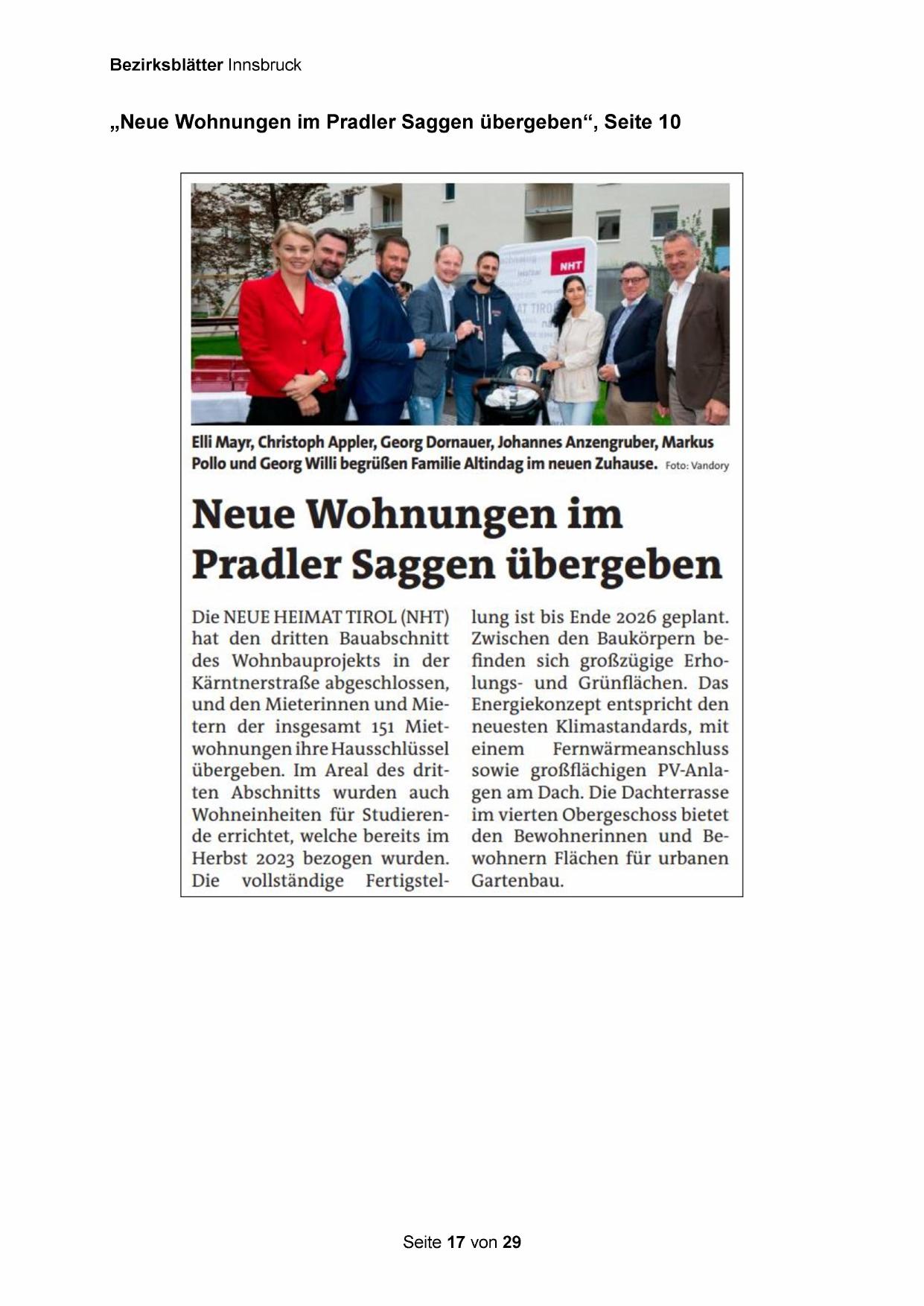 „Neue Wohnungen im Pradler Saggen übergeben“, Seite 10