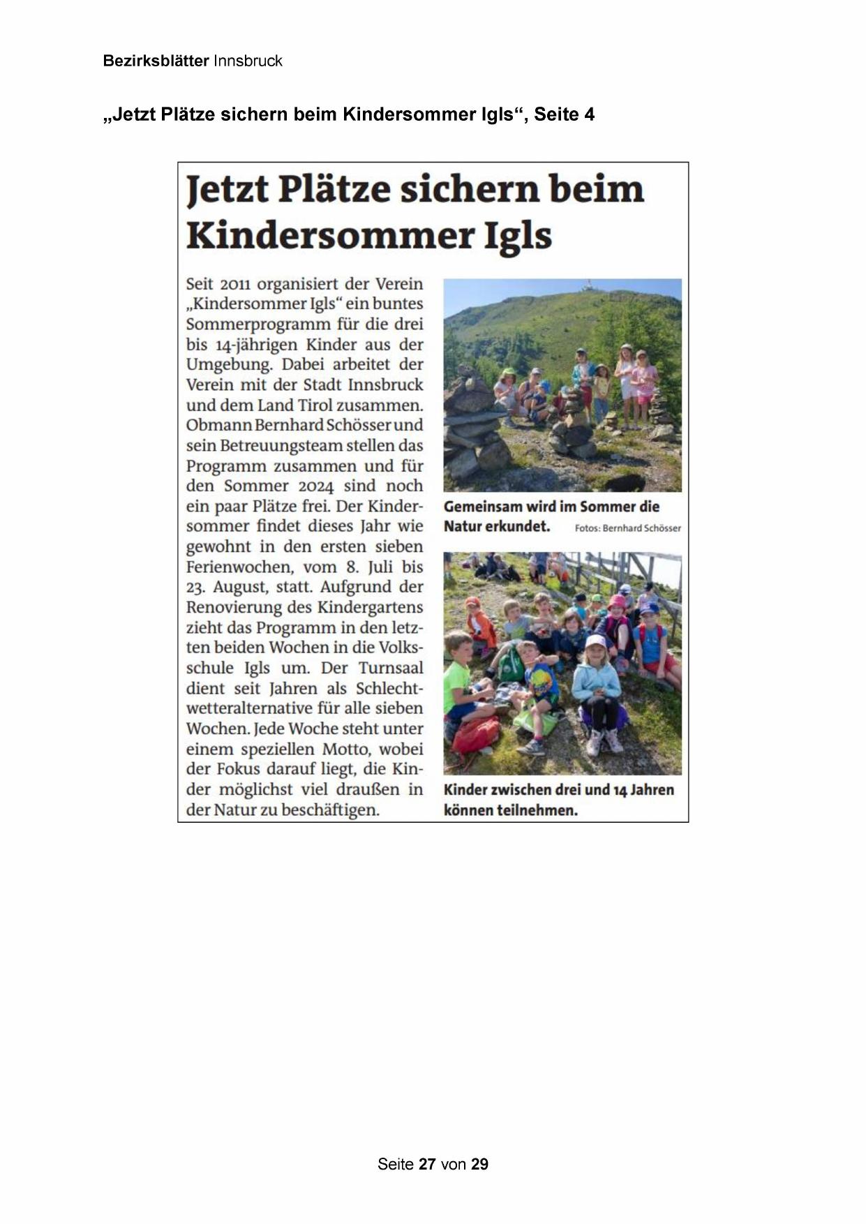 „Jetzt Plätze sichern beim Kindersommer Igls“, Seite 4