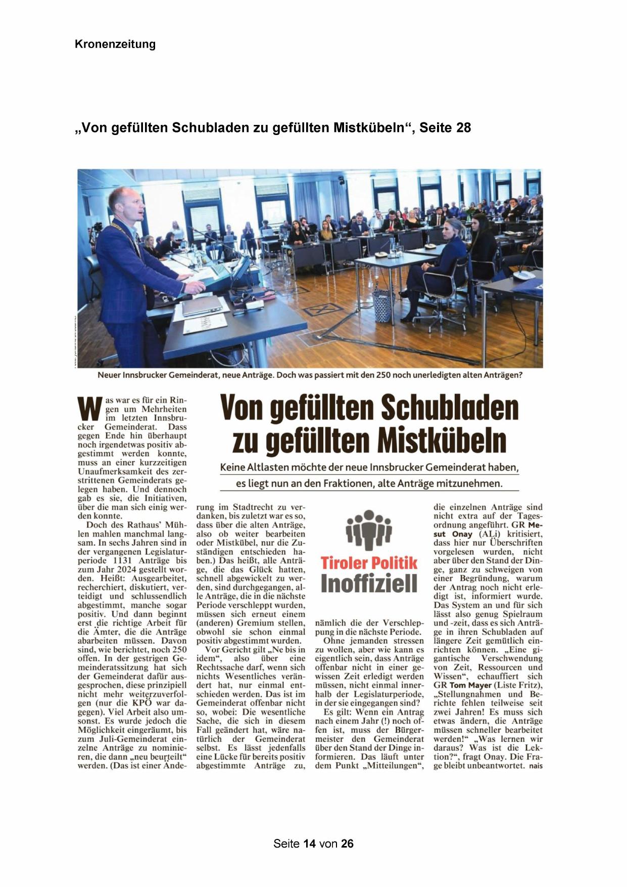 Neuer Innsbrucker Gemeinderat, neue Anträge. Doch was passiert mit den 250 noch unerledigten alten Anträgen?