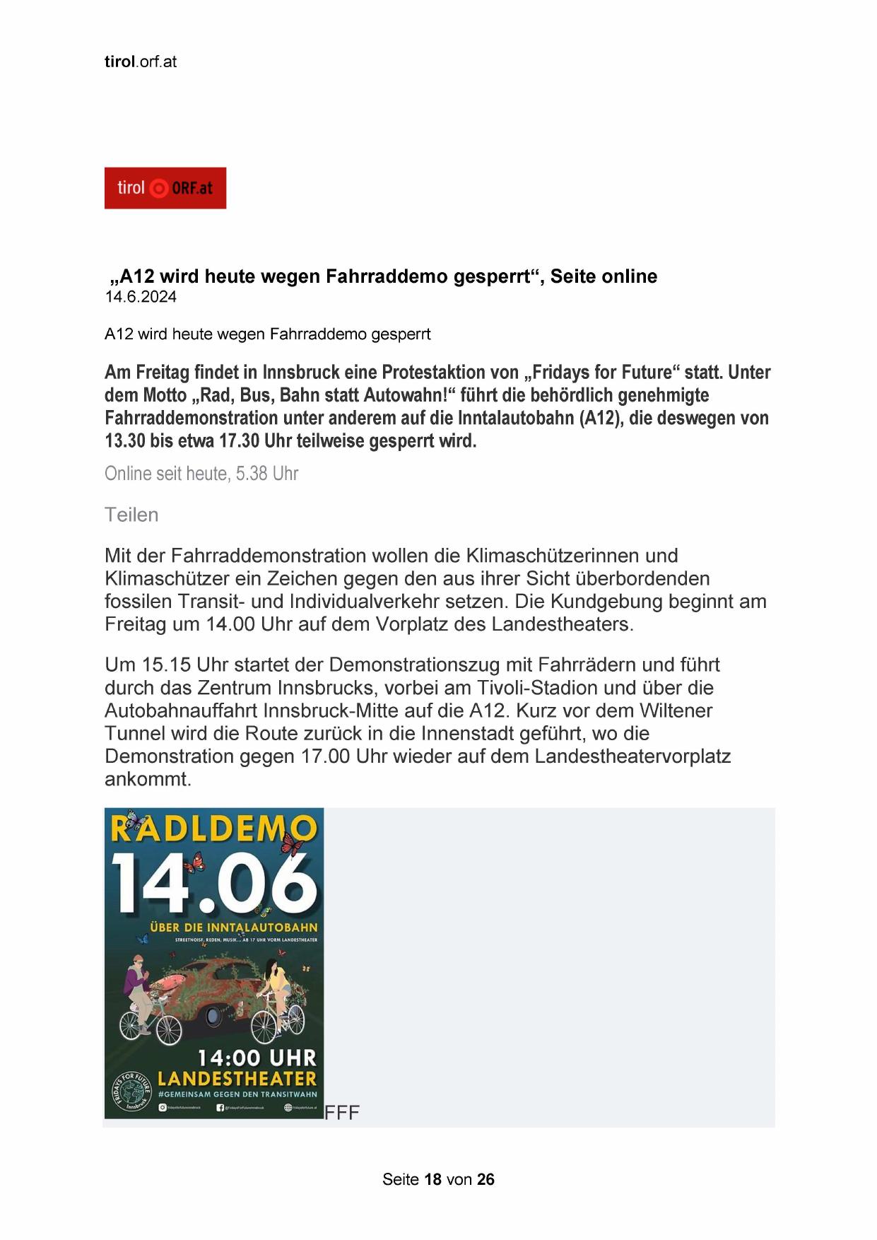 „A12 wird heute wegen Fahrraddemo gesperrt“, Seite online