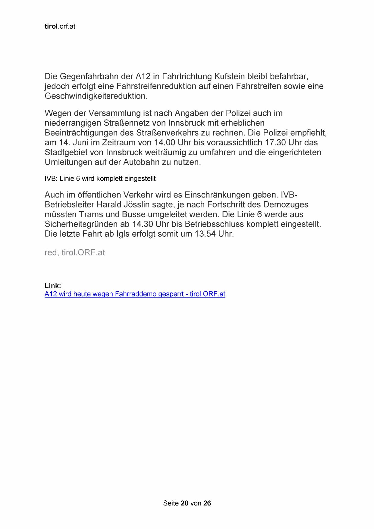 A12 wird heute wegen Fahrraddemo gesperrt - tirol.ORF.at