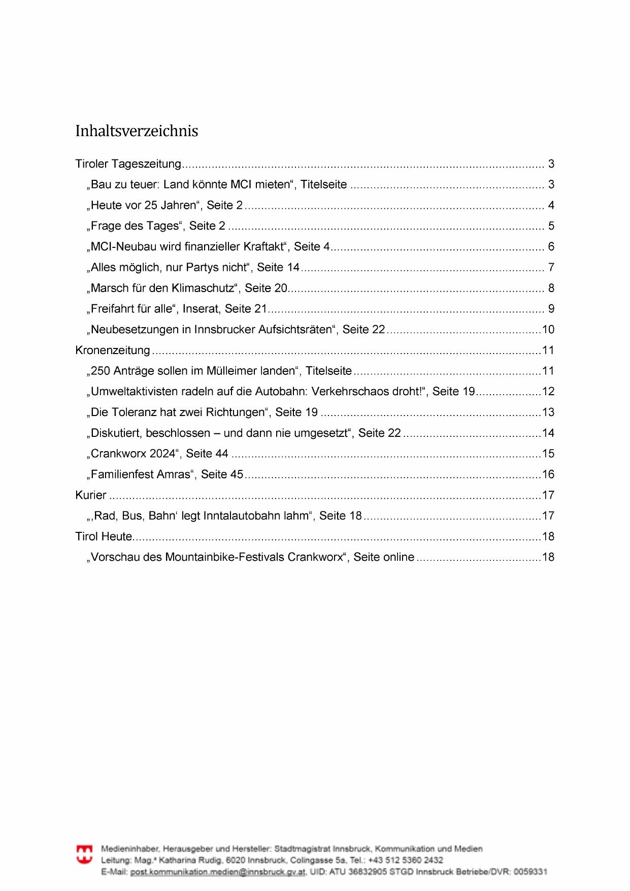 „Neubesetzungen in Innsbrucker Aufsichtsräten“, Seite 22 ....0000000 RE 10