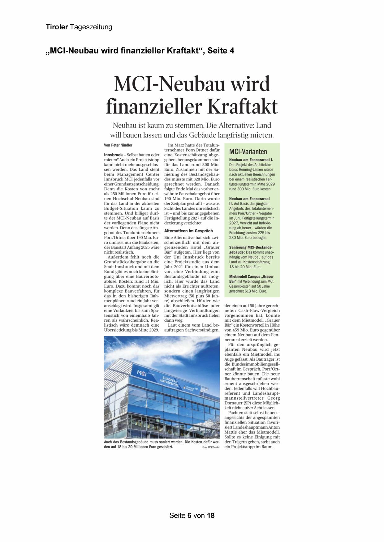 „MCI-Neubau wird finanzieller Kraftakt‘“, Seite 4