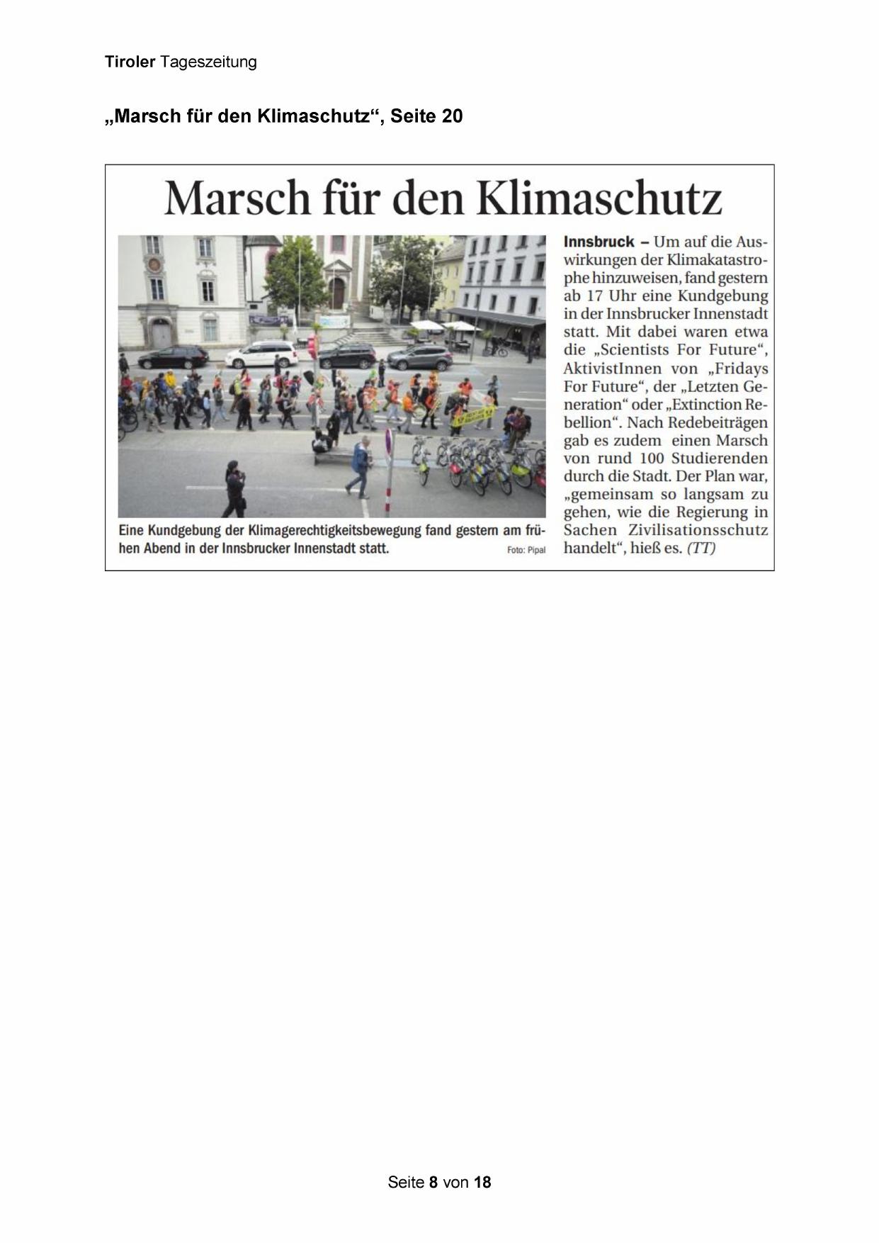 Innsbruck - Um auf die Auswirkungen der Klimakatastrophe hinzuweisen, fand gestern