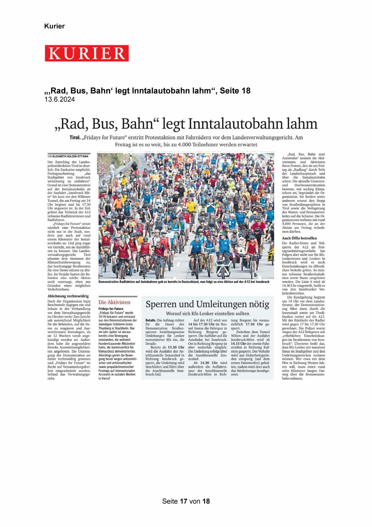 „‚Rad, Bus, Bahn‘ legt Inntalautobahn lahm“, Seite 18