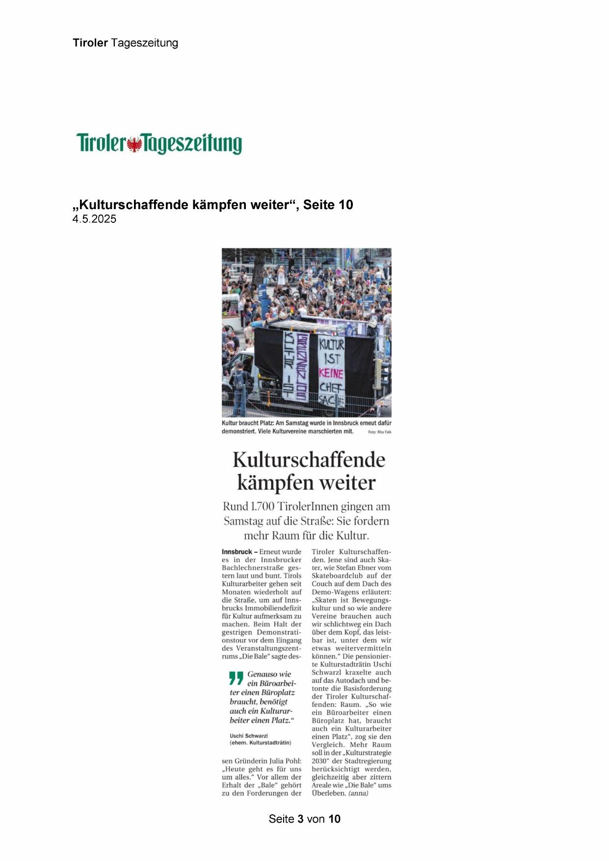 Kultur braucht Platz: Am Samstag wurde in Innsbruck erneut dafür