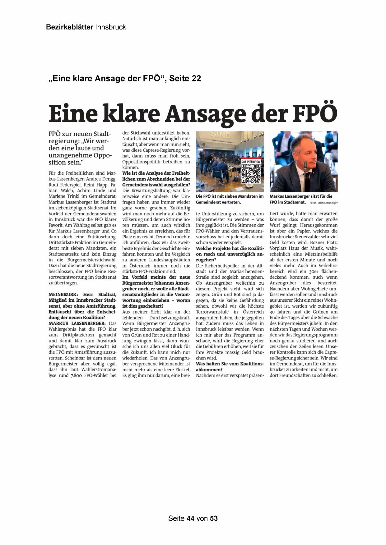 Für die Freiheitlichen sind Markus Lassenberger, Andrea Dengg,